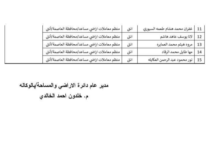 أسماء المدعوين للمقابلات الشخصية لوظائف دائرة الأراضي والمساحة