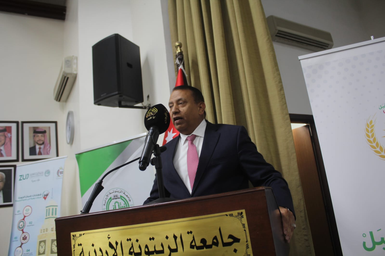 من جهته، أكد رئيس الجامعة الأستاذ الدكتور محمد المجالي أن احتضان الجامعة لهذا الاحتفال الوطني يشكل شرفاً كبيراً، مشيراً إلى أن جامعة الزيتونة الأردنية دأبت منذ تأسيسها على خدمة الوطن وأبنائه، حتى أصبحت مؤسسة راسخة تتقدم بثبات وتحقق حضوراً وتميزاً بين الجامعات الأردنية. وأضاف أن الجامعة تستمد عطـاءها من رسالتها الوطنية، وتسهم في مسيرة التعليم والثقافة والتنمية.