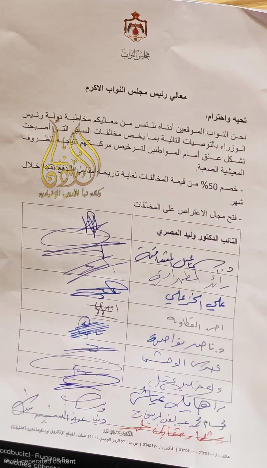 أوصى عدد من النواب في مذكرة رسمية، بخصم 50% على مخالفات السير في حال قيام المواطنين بسدادها نقداً.