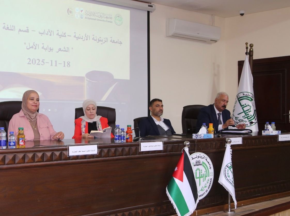 انطلاقاً من الدور الريادي لجامعة الزيتونة الأردنية في احتضان النشاطات الثقافية التي تعزّز حضور الإبداع الأدبي في البيئة الجامعية، نظّم قسم اللغة العربية في كلية الآداب أصبوحة شعرية بعنوان "الشعر بوابة الأمل"، بحضور عميد الكلية الدكتور موسى الزغول، ورئيس قسم اللغة العربية الدكتور علاء الدين زكي، وعدد من أساتذة الكلية وطلبتها.