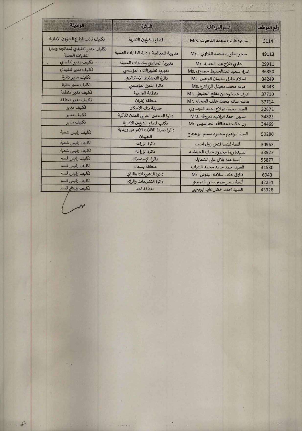 وافقت لجنة أمانة عمّان على تنسيب مدير المدينة بتثبيت عدد من الموظفين في وظائفهم المسمّاة ضمن فئاتهم الوظيفية، وذلك استنادًا لأحكام نظام الموارد البشرية وتعليماته. وجاء القرار بعد الاطلاع على كشوفات الموظفين المدرّجة، على أن يعمل به اعتبارًا من تاريخ صدوره