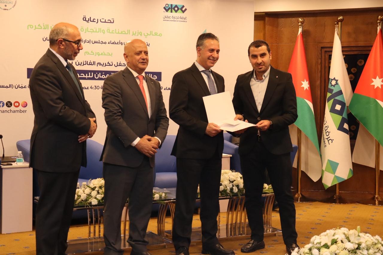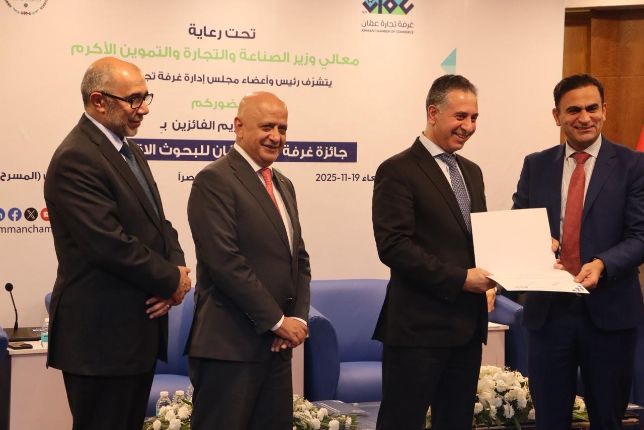 كما أعرب عن تقديره لجميع الباحثين الذين تقدموا للجائزة في دورتها الأولى، معتبرًا أن حجم المشاركة يعكس ثقة المجتمع الأكاديمي برسالة الغرفة، ويؤكد وجود طاقات بحثية أردنية قادرة على الإسهام في رسم ملامح الاقتصاد الوطني.