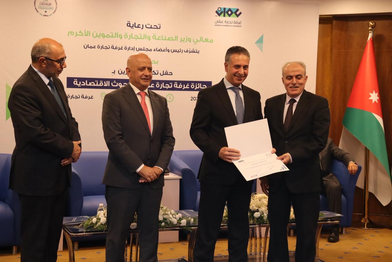 من جهته، أكد رئيس غرفة تجارة عمان، العين خليل الحاج توفيق، أن إطلاق الجائزة يأتي ترجمةً لالتزام الغرفة بدعم المعرفة الاقتصادية وتعزيز ثقافة البحث العلمي القائم على الأدلة.