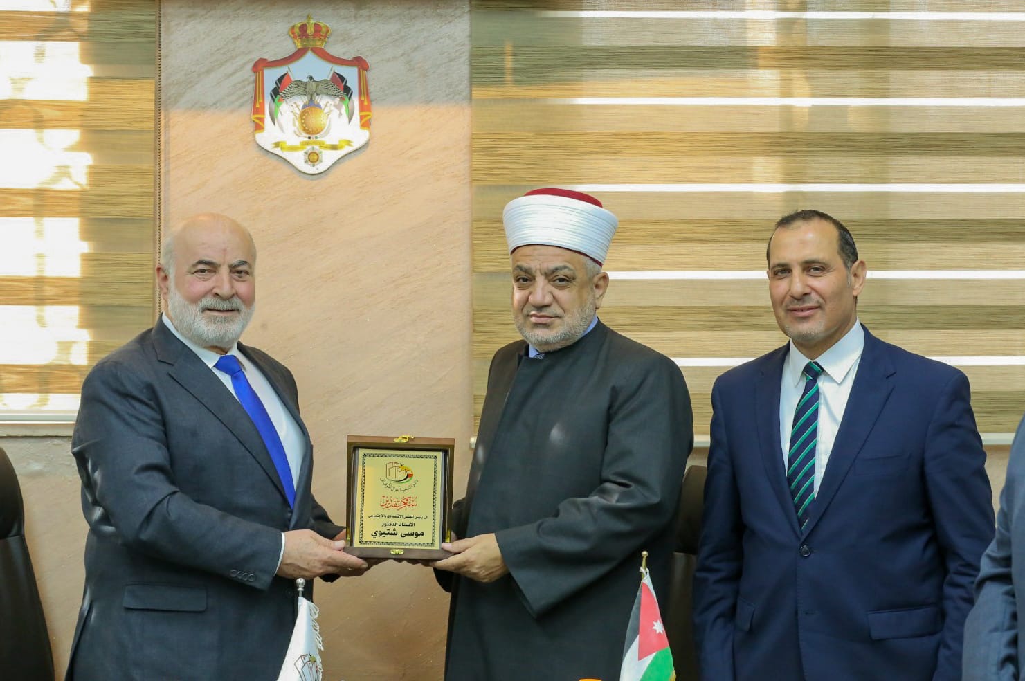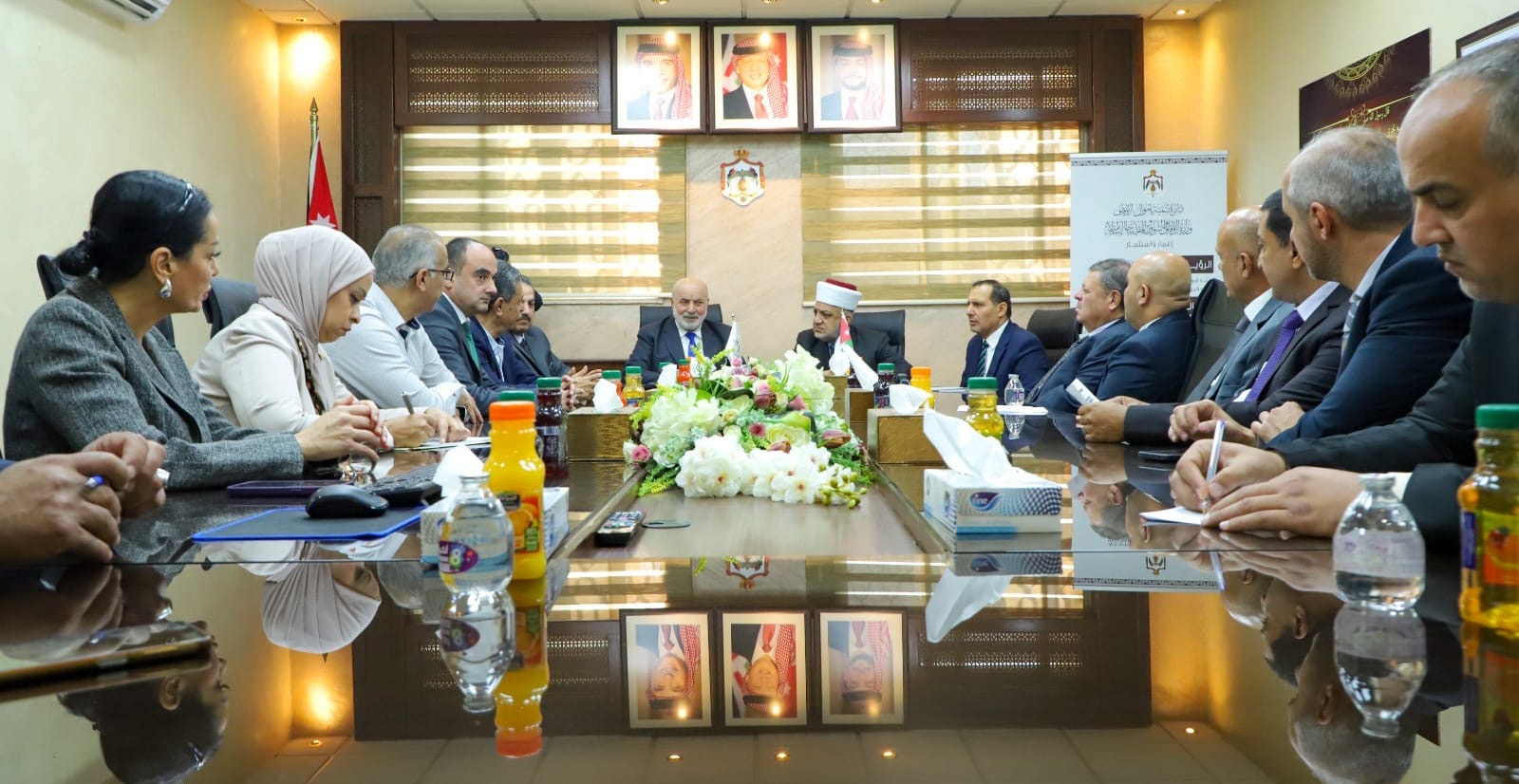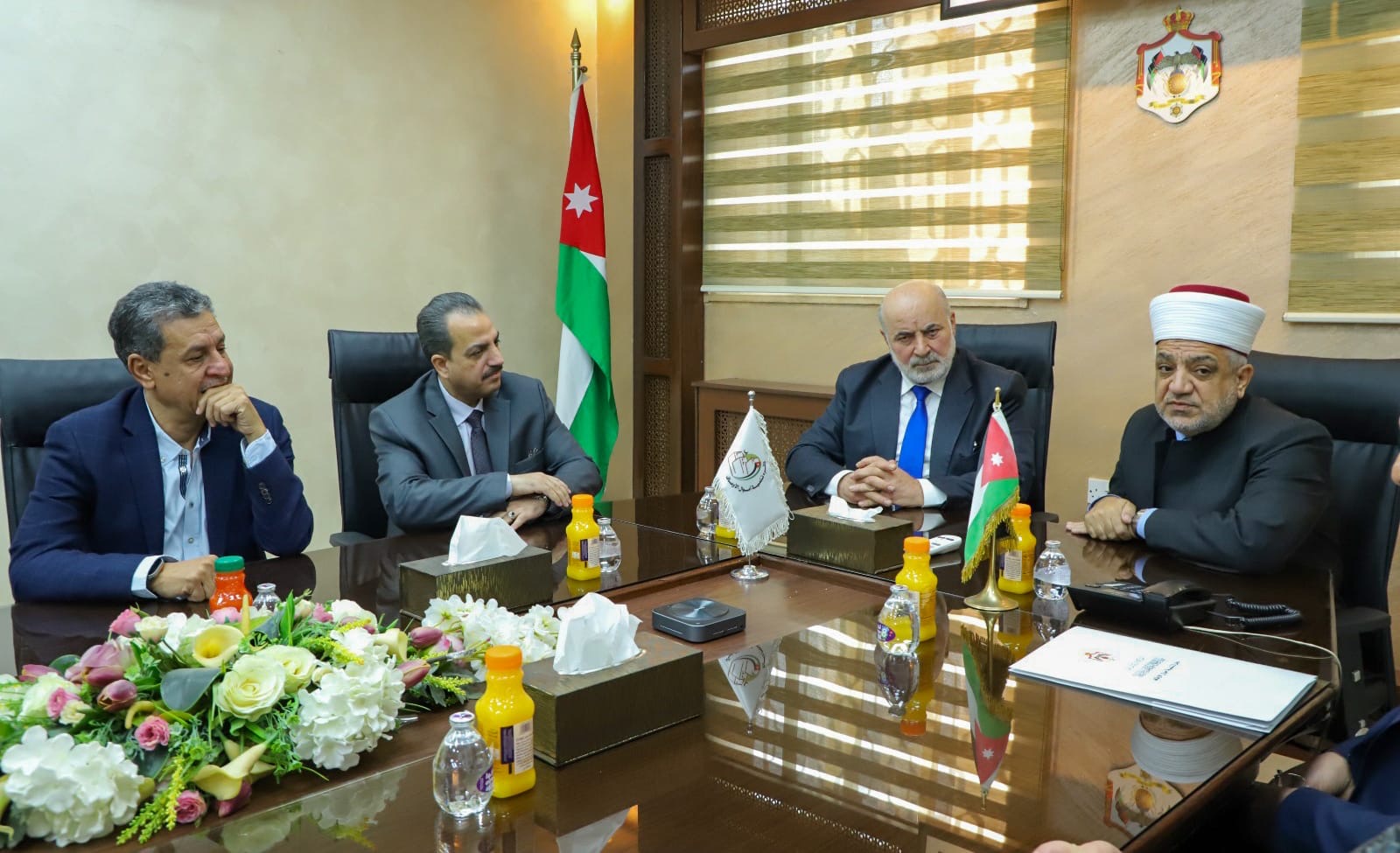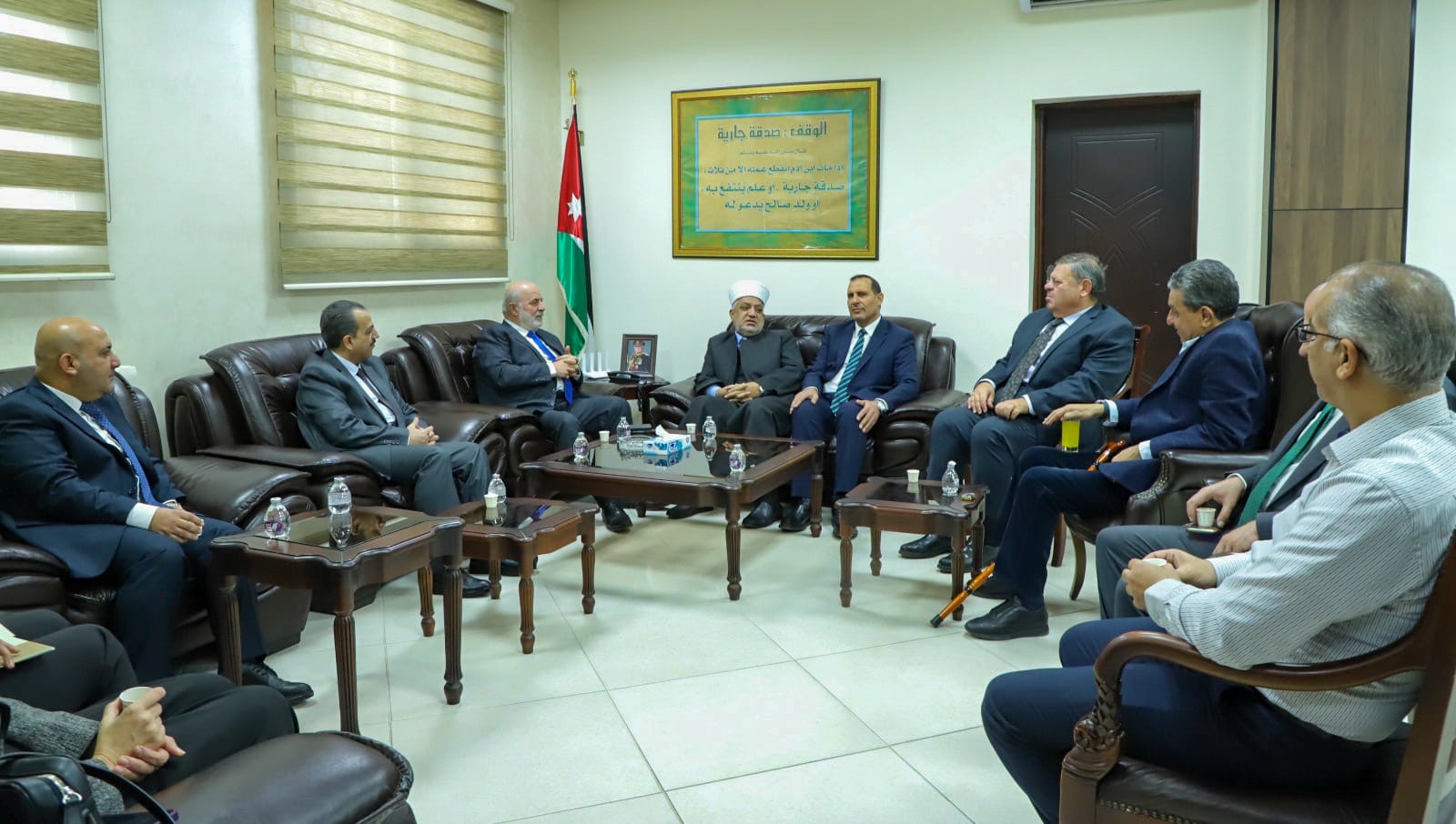 استقبل وزبر الأوقاف والشؤون والمقدسات الاسلاميه الدكتور محمد الخلايله في مبنى الدائره في جبل اللويبده اليوم الاثنين رئيس المجلس الاقتصادي والاجتماعي الدكتور موسى شتوي والوفد المرافق له وبحضورعطوفة مدير عام دائرة تنمية أموال الأوقاف يوسف القضاة للاطلاع على دور الوقف الخيري في المساهمه بالتنمية المستدامه في المملكه