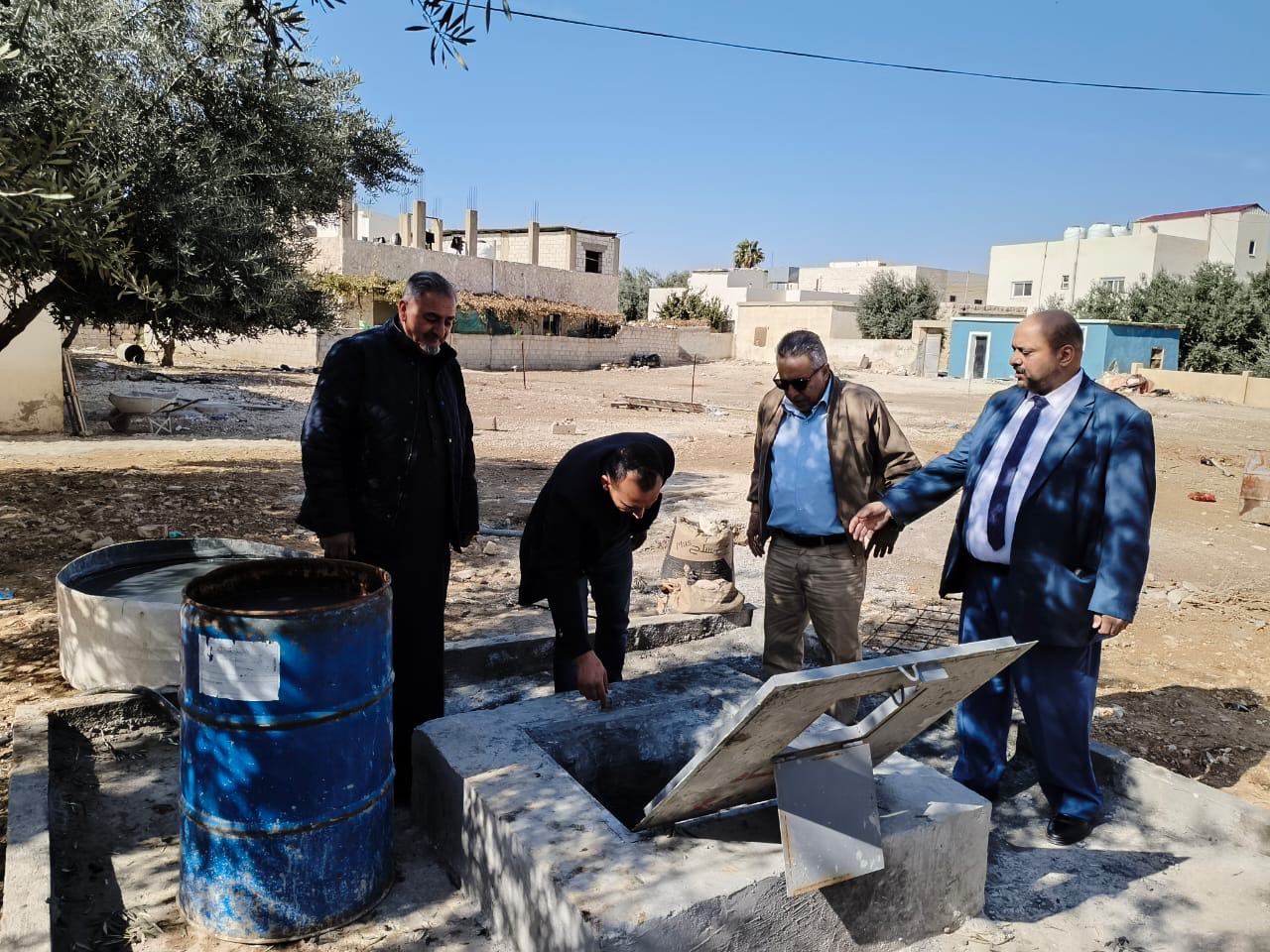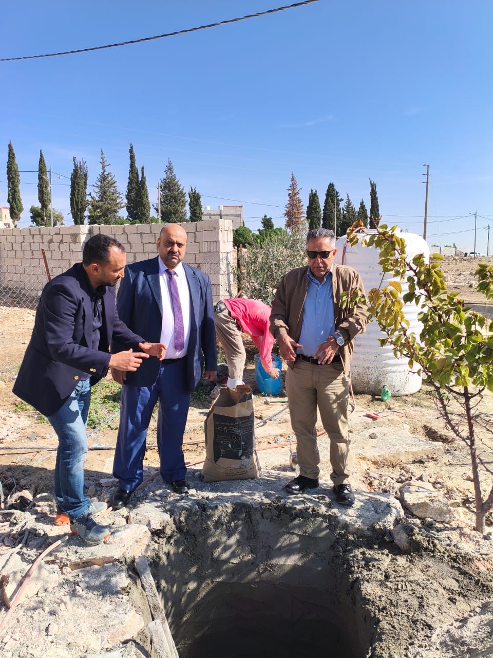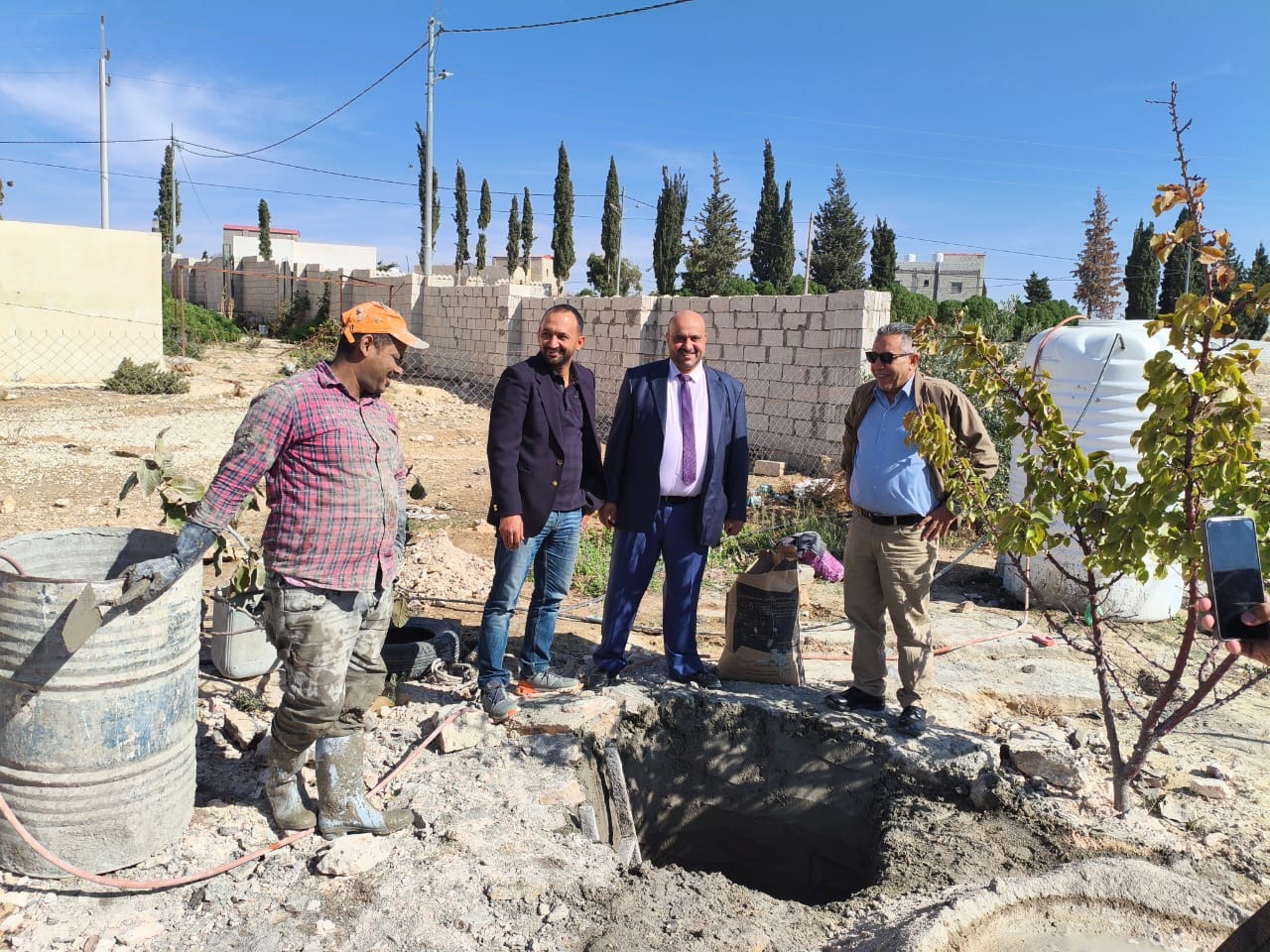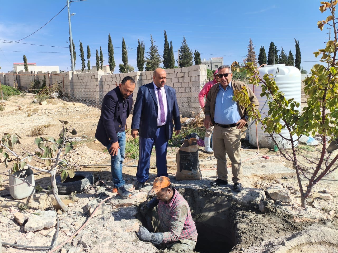 تفقد امين عام وزارة المياه والري الدكتور جهاد المحاميد والمساعد للشؤون الإدارية والمالية الدكتور محمد العفيشات يوم الاربعاء والخميس 20/11/2025 -19 سير العمل بمشروع حفر ابار (انجاصة) منزلية تجميعية لمياه الامطار في محافظة الكرك في مناطق لواء القصر ولواء فقوع وعي والتي تاتي تنفيذا لبرنامج التحديث الاقتصادي والاستراتيجة الوطنية للمياه 2023_2040 لاستدامة مصادر المياه والوصول الى أمن مائي.