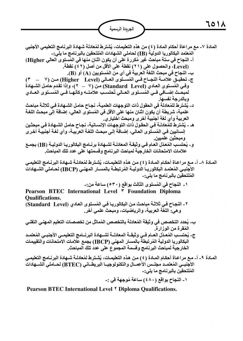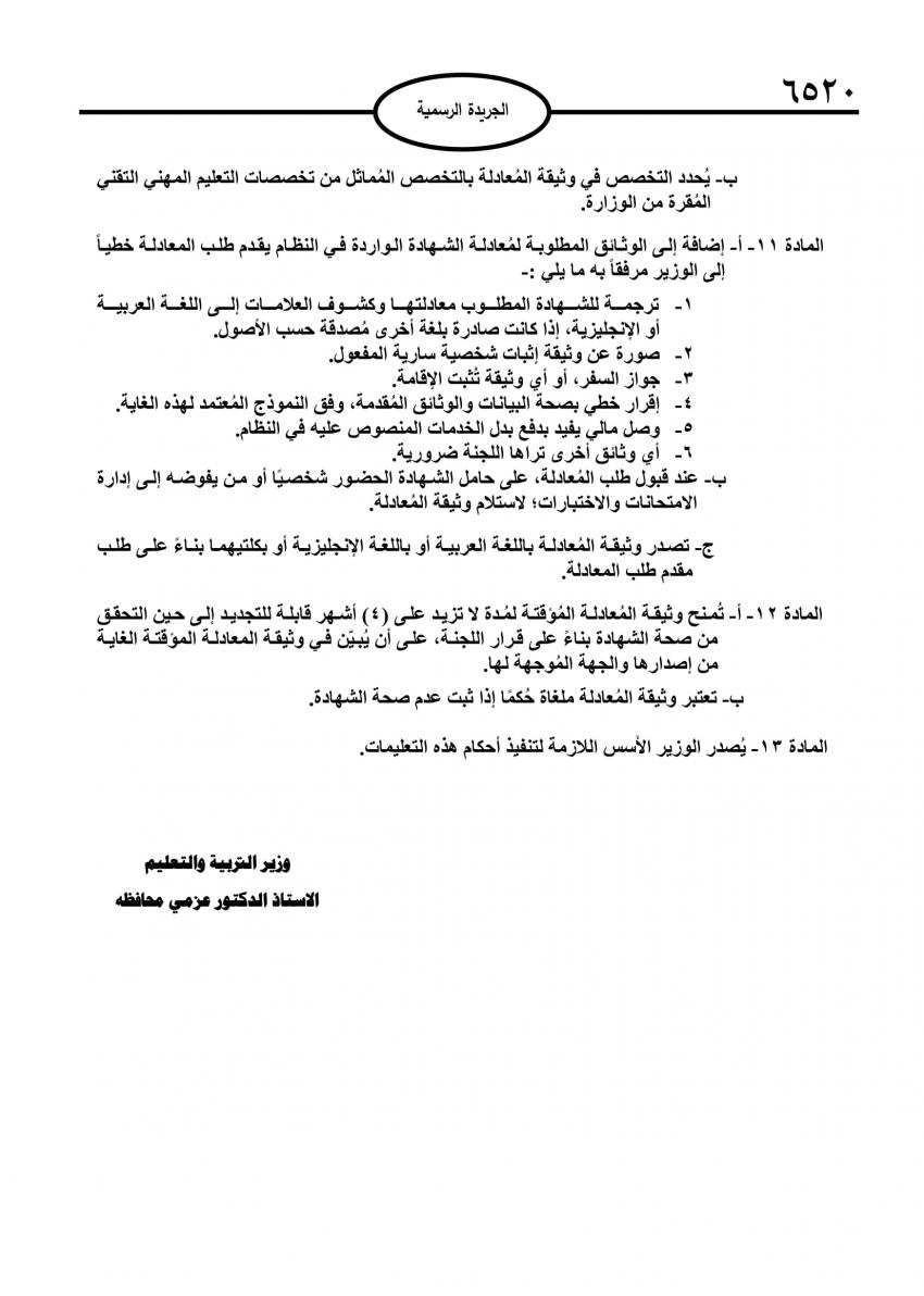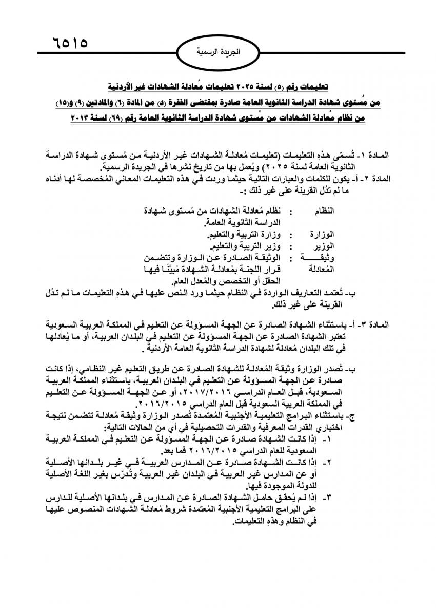 وجاءت التعليمات بمقتضى الفقرة (د) من المادة (1) والمادتين (٩) و(15) من نظام معادلة الشهادات من مستوى شهادة الدراسة الثانوية العامة رقم (69) لسنة ٢٠١٣.