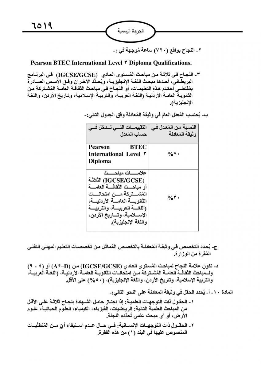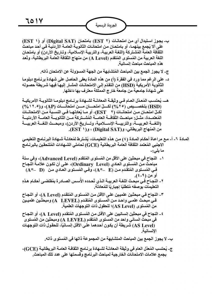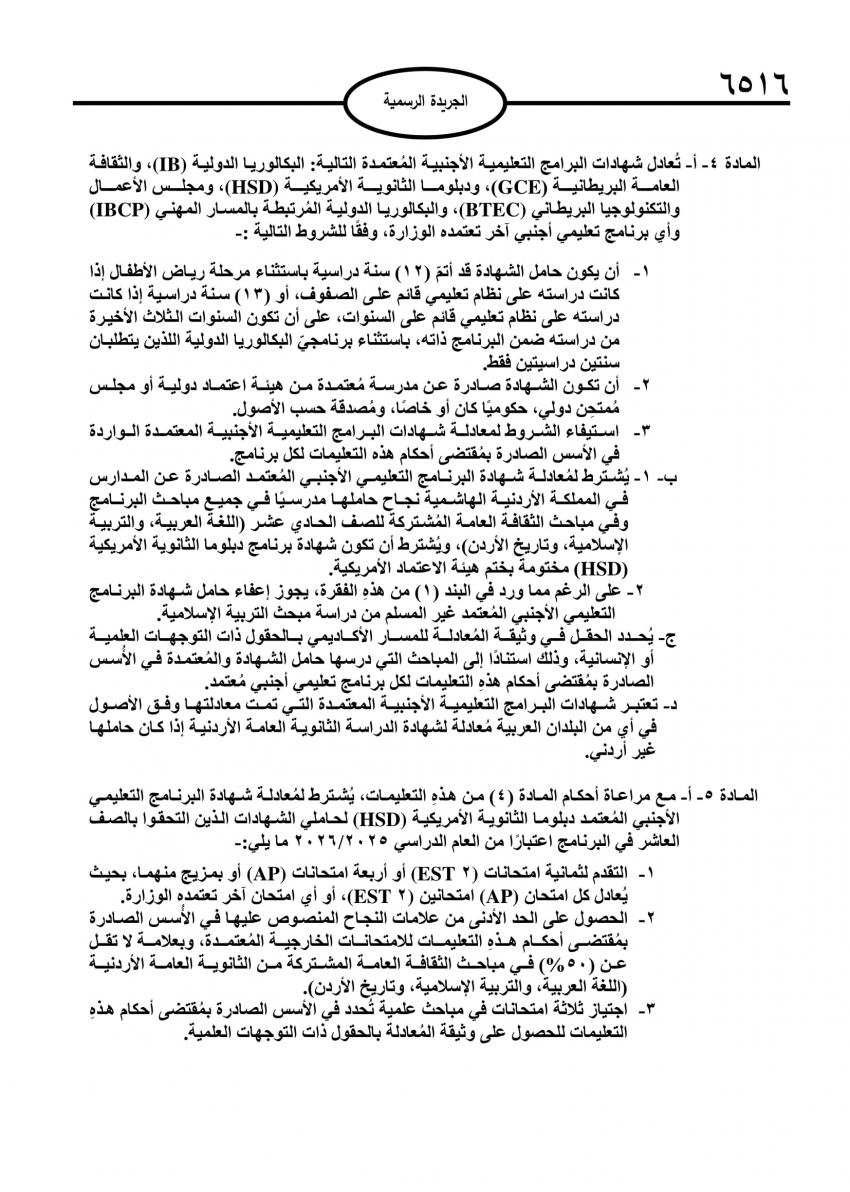 صدرت في عدد الجريدة الرسمية اليوم الاثنين، تعليمات جديدة لمعادلة الشهادات غير الأردنية من مستوى شهادة الدراسة الثانوية العامة.