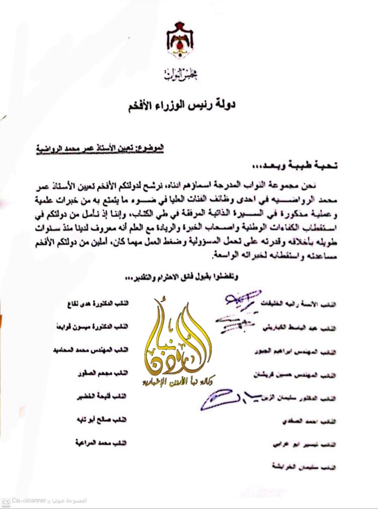 *وأرفق الخرابشة صورة الكتاب التالي مع التصريح الذي نشره عبر حسابه على فيسبوك.