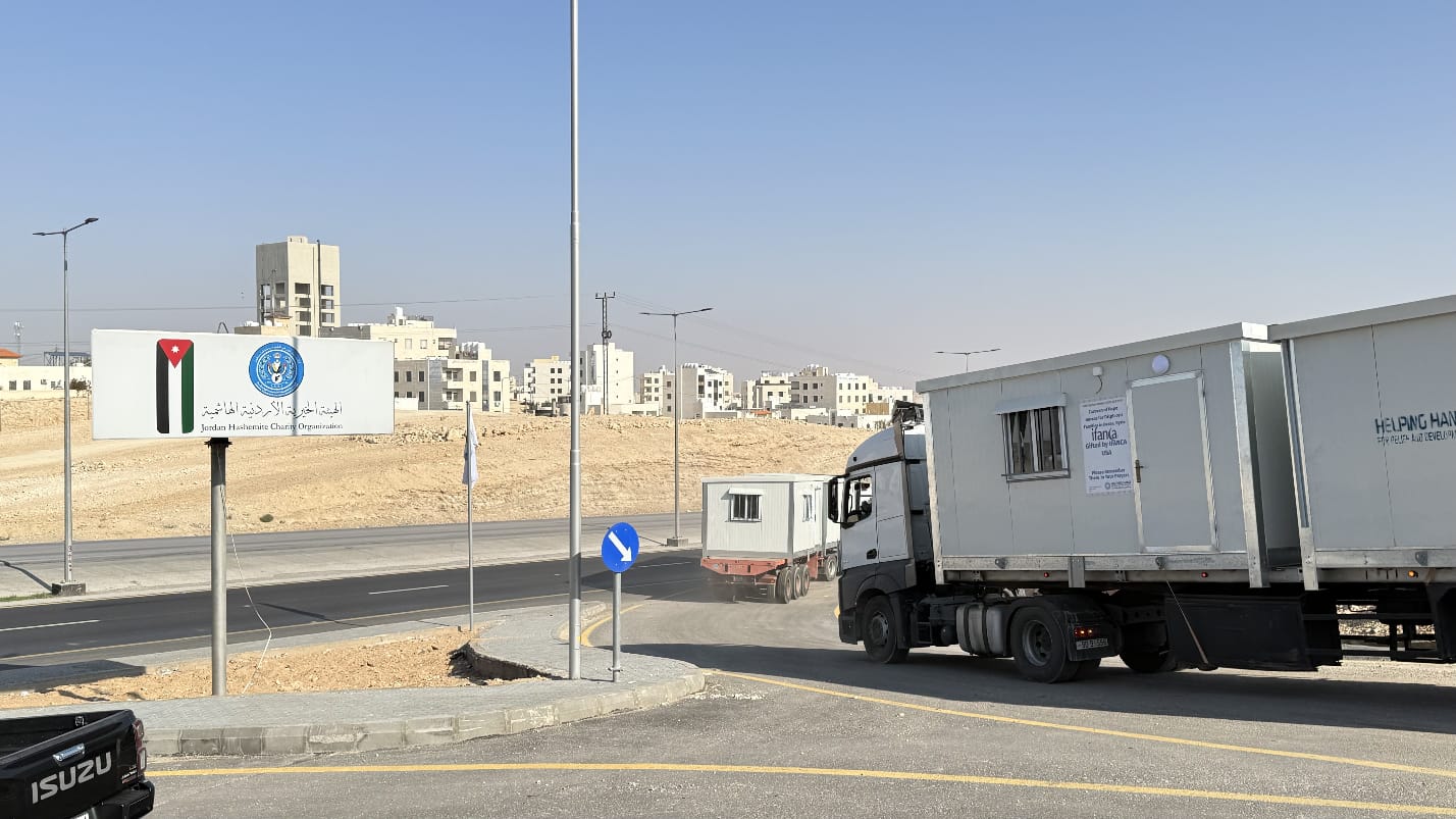 وقالت الهيئة الخيرية الأردنية الهاشمية في بيان صدر عنها إن القافلة تضم ٢١ شاحنة، تحتوي على كرفانات سكنية ومواد غذائية.