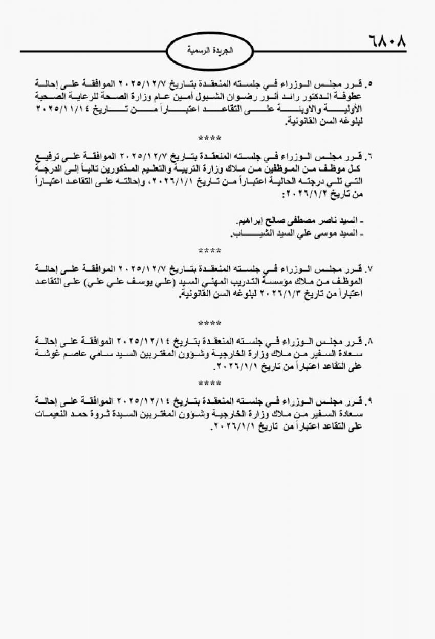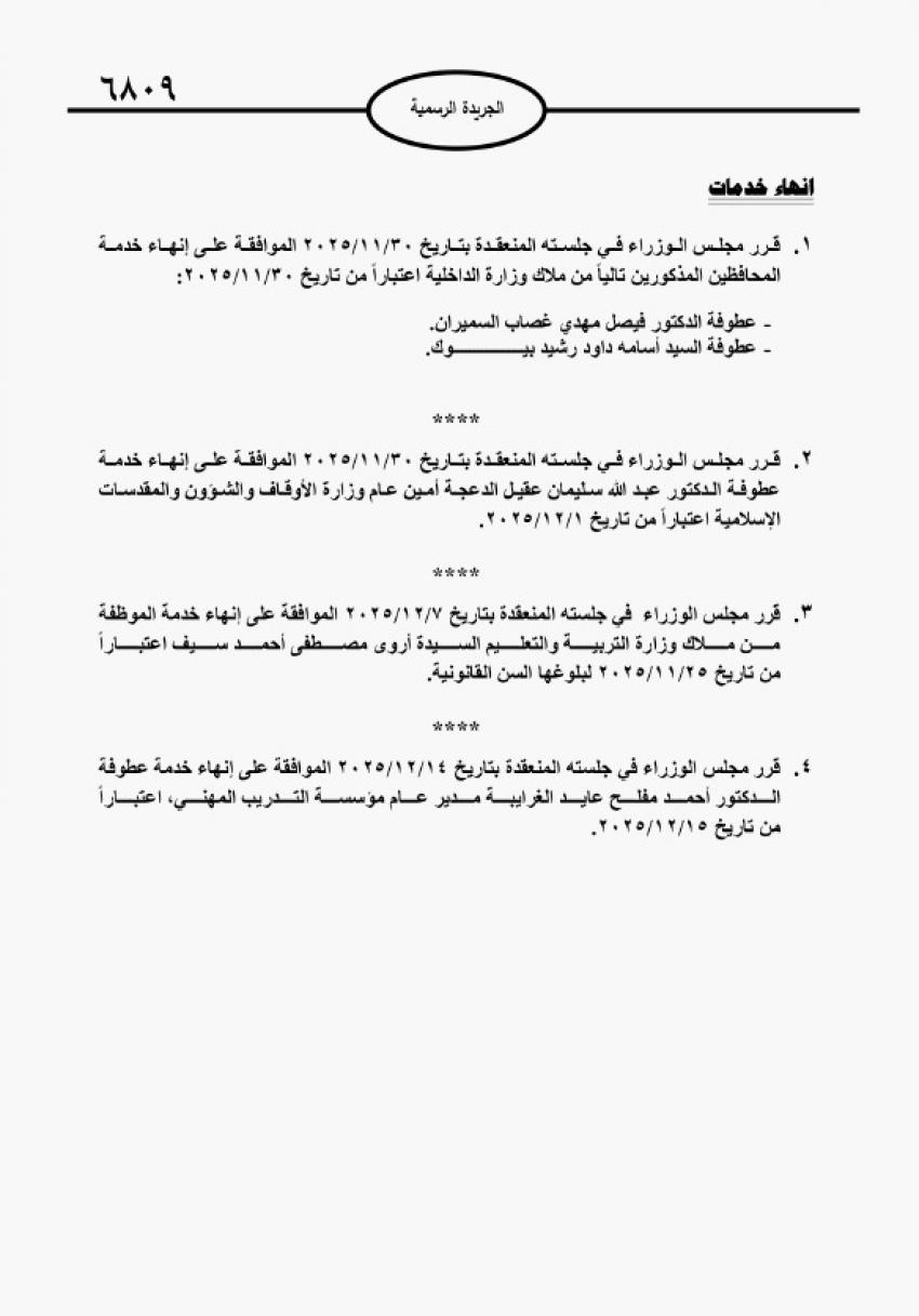 عاجل - تعيينات وإحالات على التقاعد لموظفين حكوميين (أسماء)