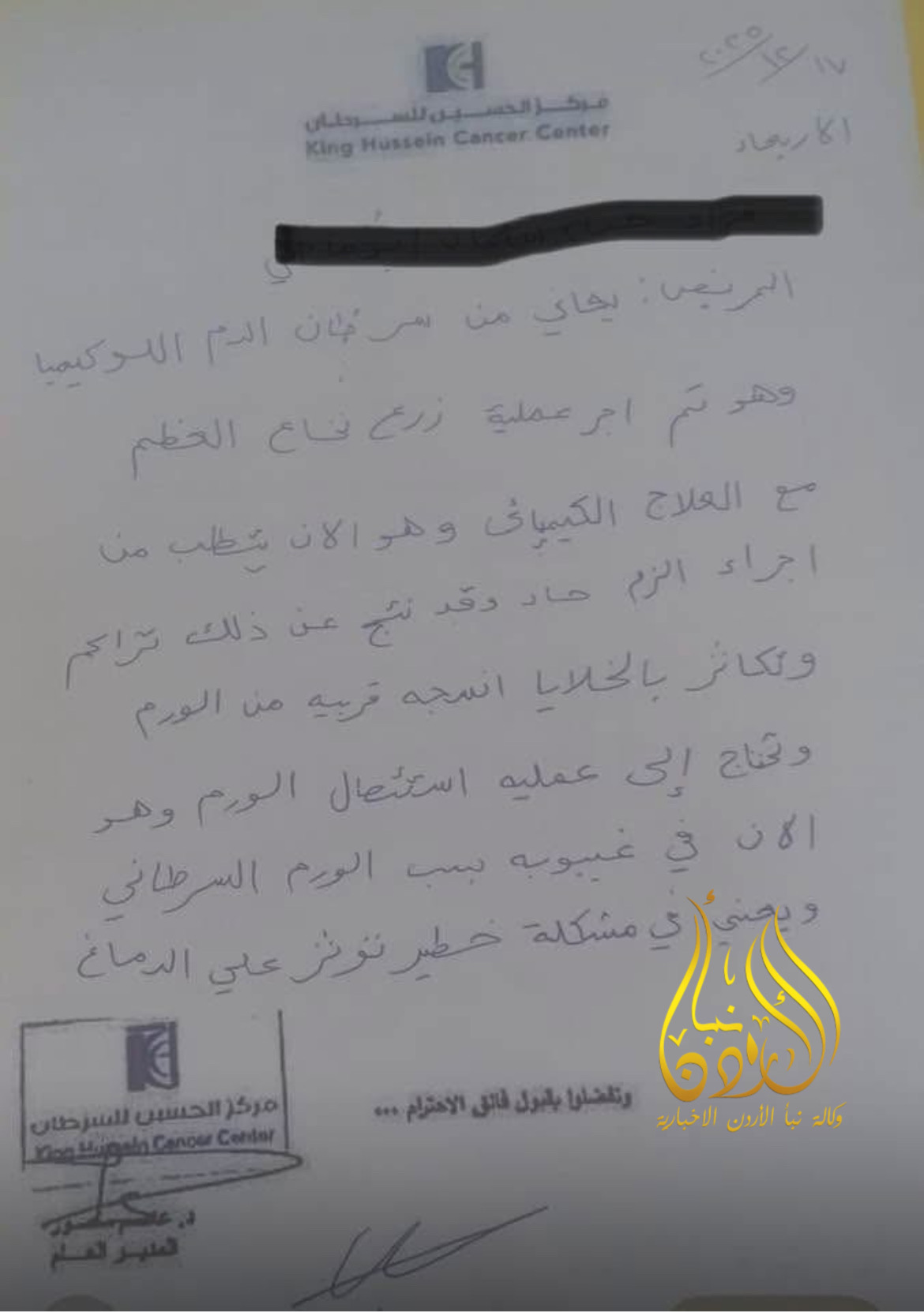 نشر مدير عام مركز الحسين للسرطان عاصم منصور عبر فيسبوك تحذيراً من تقارير طبية مزورة يتم تداولها لتجذب تعاطف الناس وجمع التبرعات .