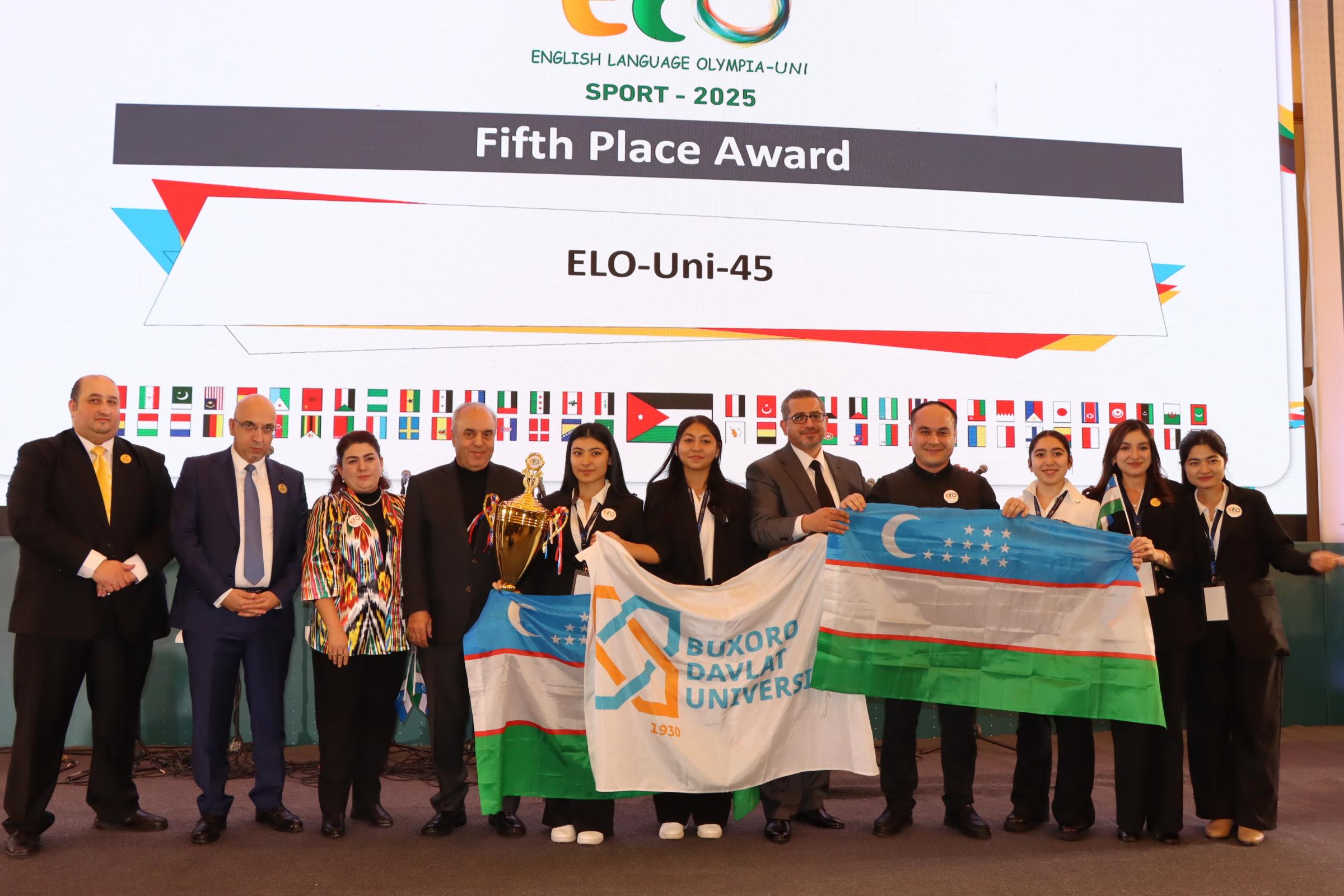 5.أحرز المركز الخامس على المستوى العالمي لأولمبياد اللغة الانجليزية العالمي للجامعات 2025 جامعة بخارى/ أوزباكستان فريق (Voices of Victory)