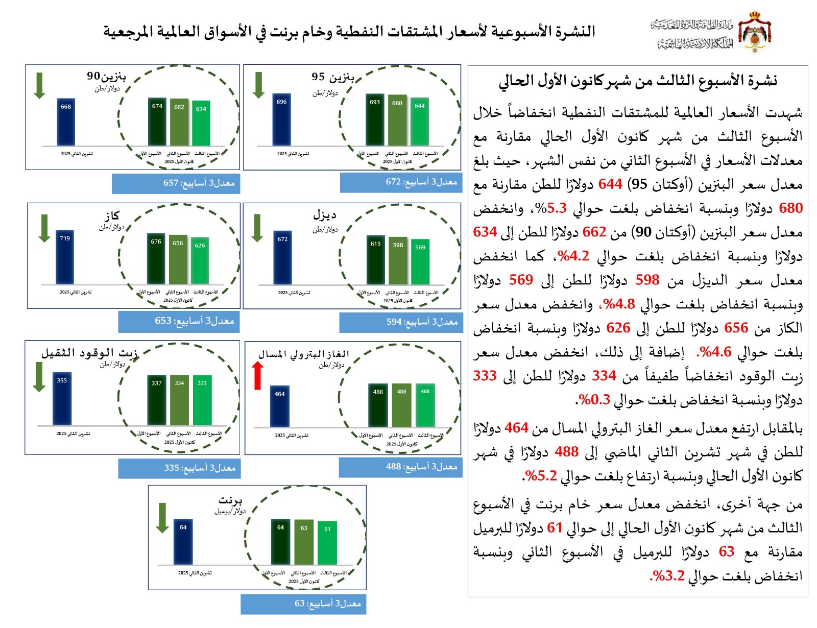 النشرة الأسبوعية لأسعار النفط الخام برنت ومشتقاته