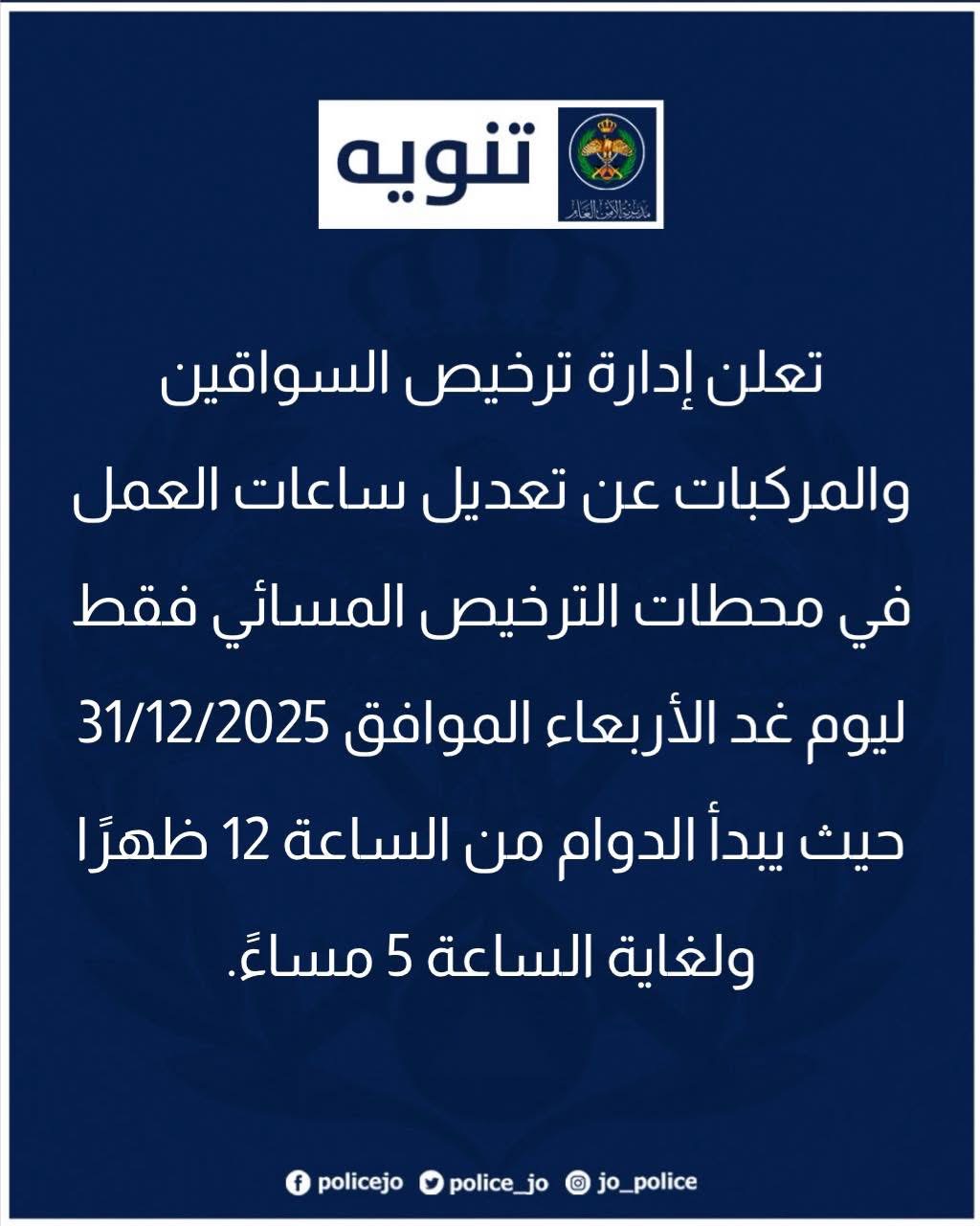 عاجل - تعديل دوام إدارة الترخيص ليوم غد