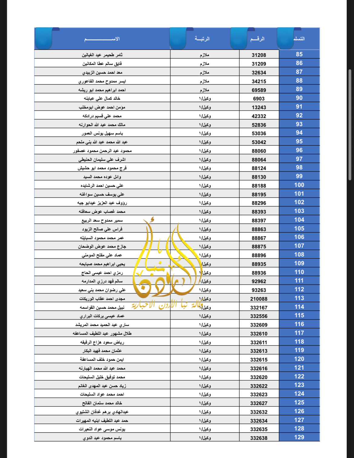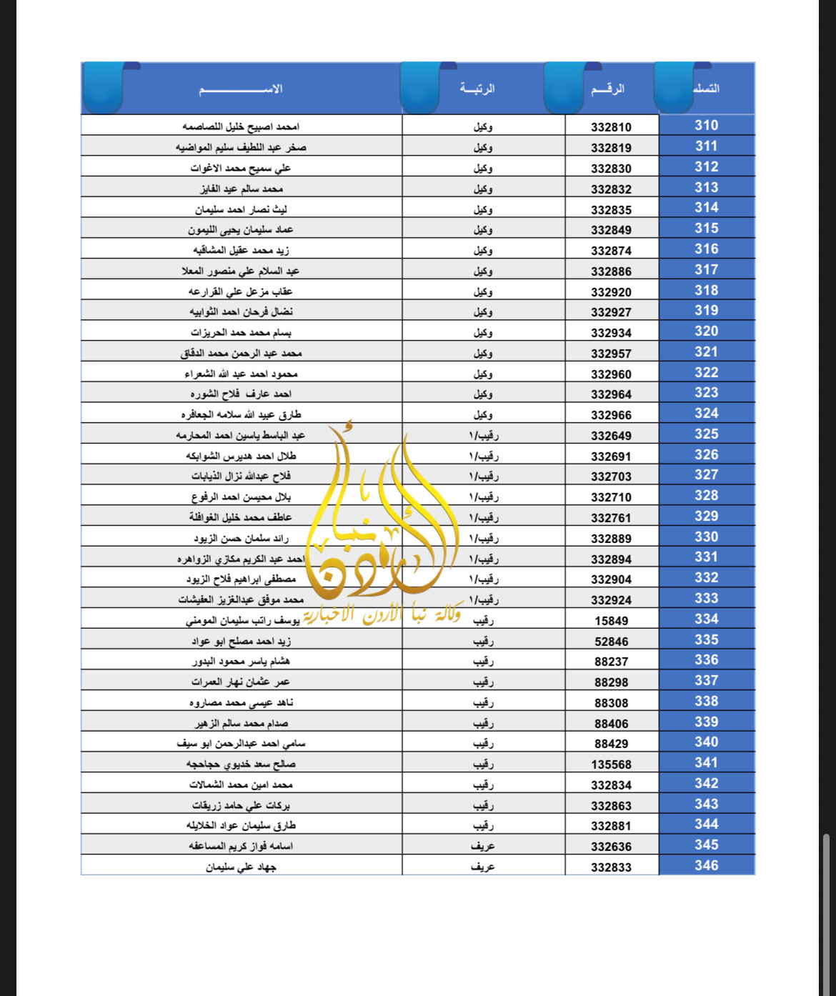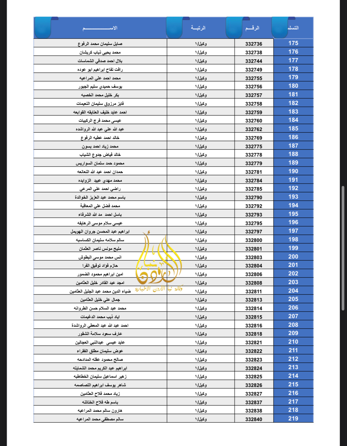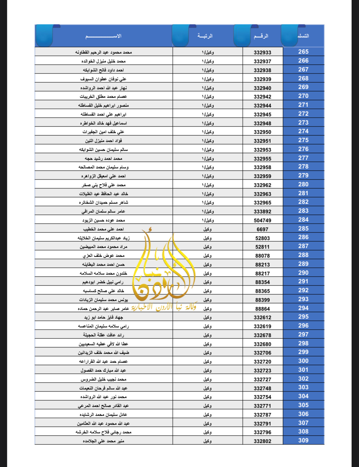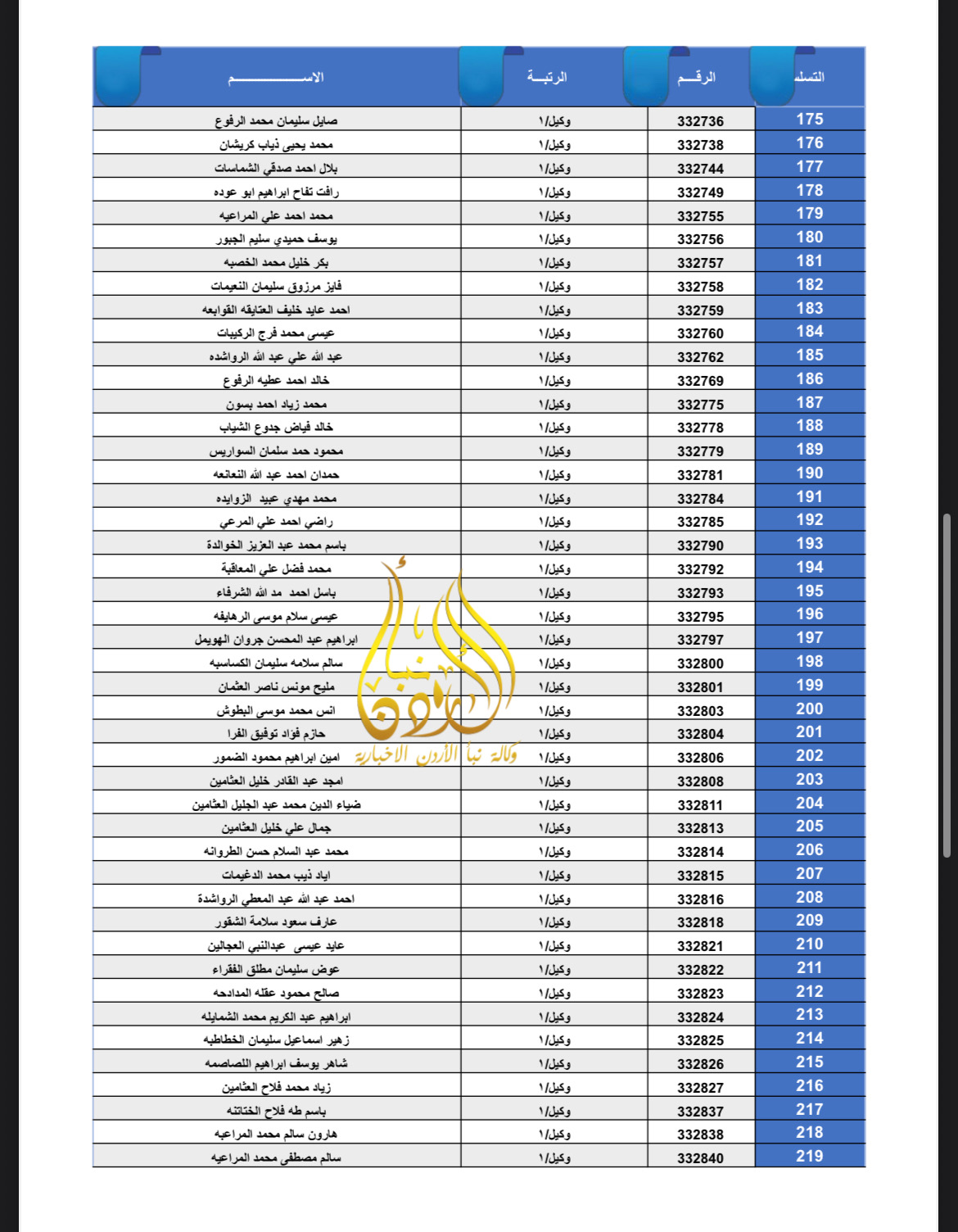 تعلن القيادة العامة للقوات المسلحة الأردنية – الجيش العربي/ مديرية مؤسسة الإسكان والأشغال العسكرية بان الضباط وضباط الصف والأفراد المبينة أسماءهم أدناه قد استحقوا قرض الإسكان العسكري(الخاص بالافراد) والضباط المستفيدين من صندوق إسكان الضباط مراجعة بنك القاهرة عمان بكافة فروعه خلال ساعات الدوام الرسمي اعتباراً من يوم الخميس الموافق 8/01/2026 للحصول على القرض.