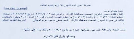 نبأ الأردن- قرر وزير الصحة الدكتور فراس الهواري الأحد، إنهاء خدمات مجموعة من الموظفين ، استنادا لأحكام المادة نظام الخدمة المدنية ونظرا لاستكمال شروط التقاعد المبكر.