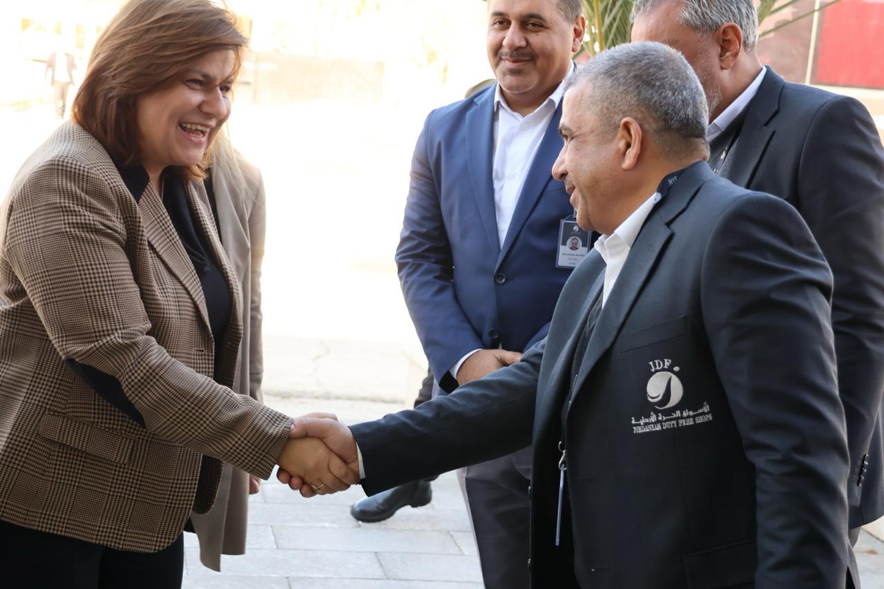 انطلاقاً من الرؤية الجديدة لمجلس ادارة شركة الاسواق الحرة الحالي ، وفي إطار نهج المتابعة الميدانية وتعزيز الحضور الإداري في الميدان قامت رئيسة مجلس إدارة شركة الأسواق الحرة الأردنية خلود السقاف اليوم بزيارة تفقدية إلى الأسواق الحرة في معبر جابر الحدودي بين المملكة الأردنية الهاشمية والجمهورية العربية السورية ، يرافقها عدد من مدراء الإدارات المعنية في الشركة ، حيث تم الإطلاع بشكل مباشر على واقع سير العمل وكافة الجوانب التشغيلية والتجارية في السوق .