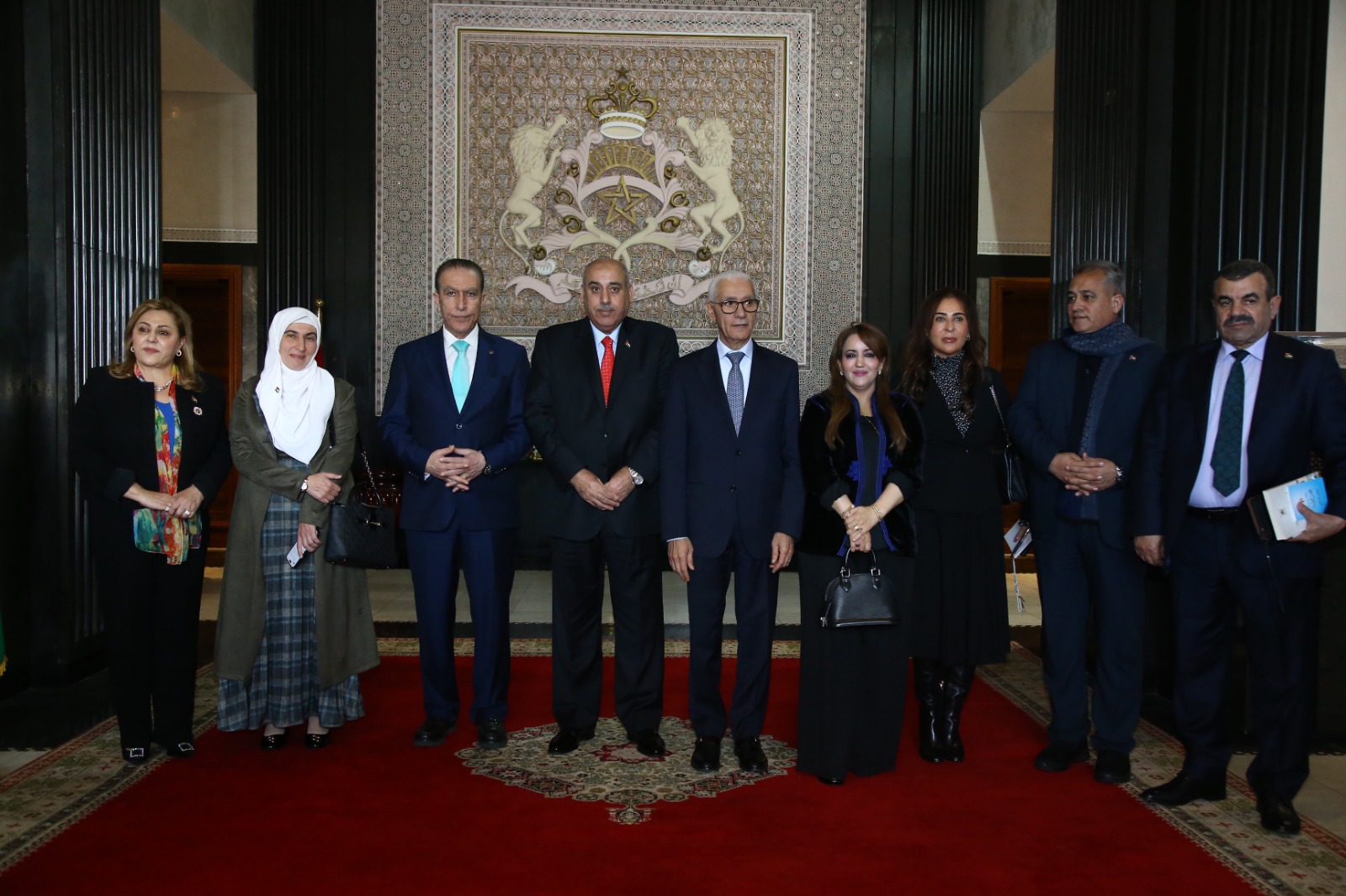 التقى رئيس مجلس النواب مازن القاضي، رئيس مجلس النواب المغربي الراشيد الطالبي العلمي، ووزير الخارجية المغربي ناصر بوريطة، ونائب رئيس مجلس المستشارين إخشيشن أحمد، وذلك في إطار زيارة رسمية يجريها القاضي وممثلي خمس كتل نيابية، بدعوة رسمية من رئيس النواب المغربي تضمنت توقيع مذكرة تعاون برلماني واسعة.