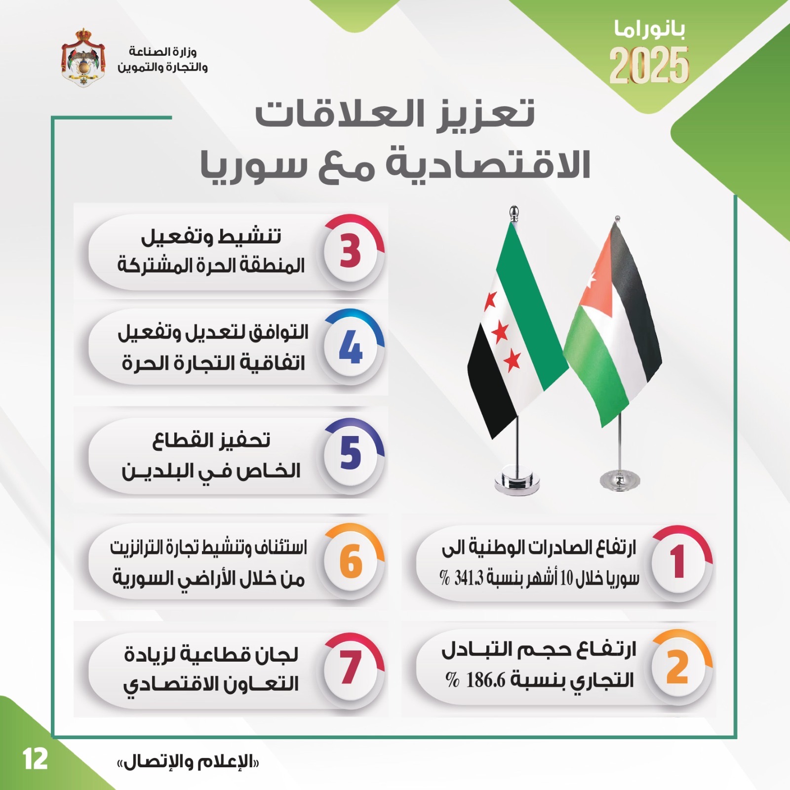 وأشار الى تعزيز التعاون الاقتصادي مع سوريا وارتفاع حجم الصادرات الأردنية اليها.