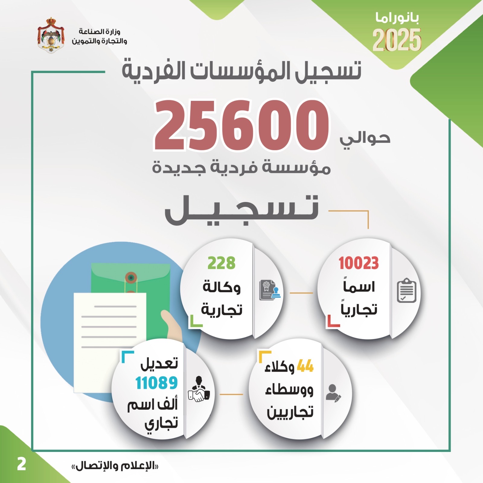 وأضاف م. القضاة في تصريح صحفي أن الإنجازات شملت ارتفاع تسجيل المؤسسات الفردية والأسماء والعلامات التجارية وبراءات الاختراع وكذلك الإجراءات المتعلقة بحماية الإنتاج الوطني وحماية الملكية الصناعية وتعزيز المنافسة وتعزيز التحول الرقمي والأتمتة.