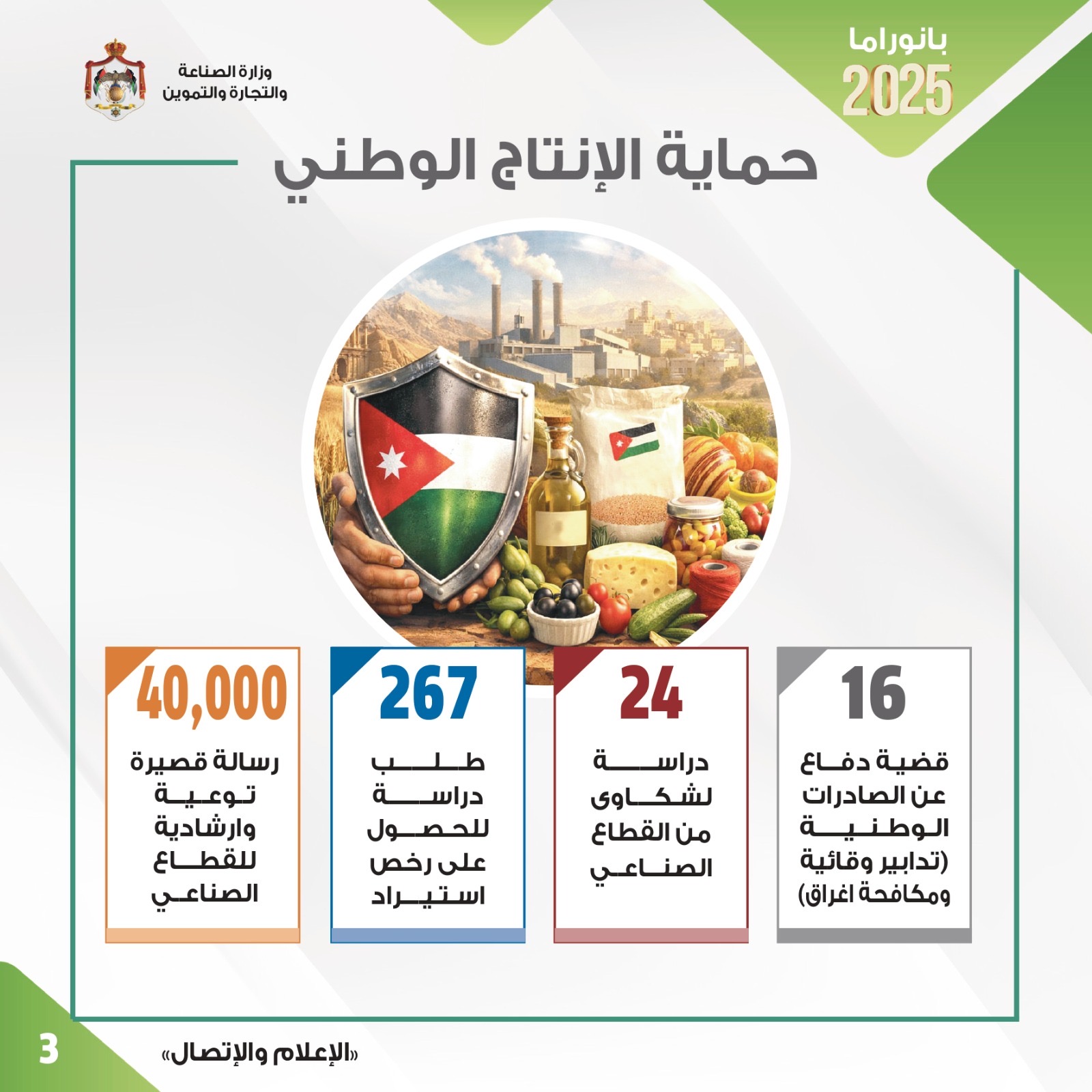 القضاة: " الصناعة والتجارة" حققت إنجازات نوعية لتعزيز الأداء الاقتصادي والأمن الغذائي ودعم مختلف القطاعات في 2025