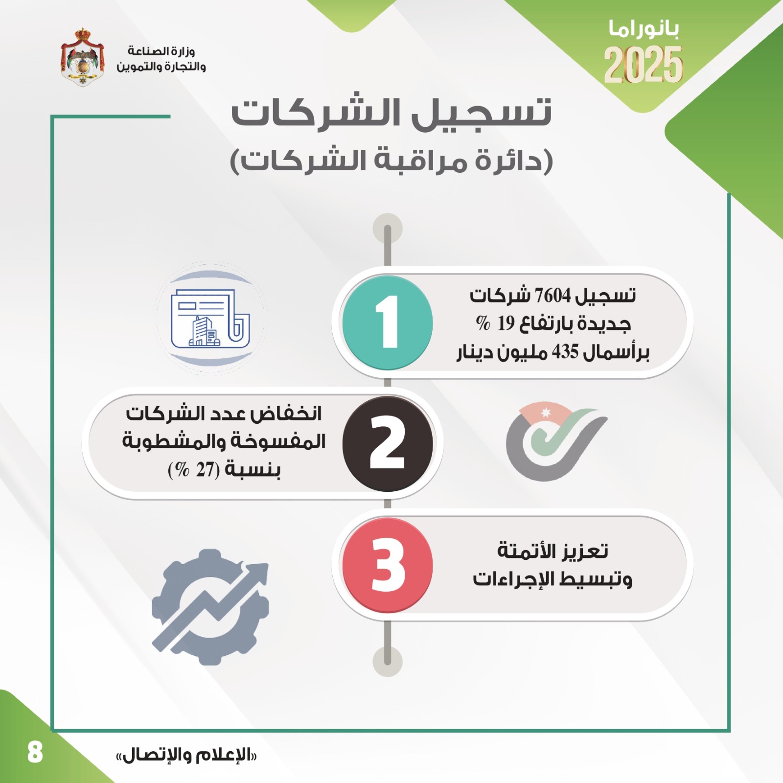 كما ارتفعت أعداد الشركات المسجلة في المملكة ورؤوس أموالها العام الماضي فيما تم عدد كبير من الشركات في مختلف القطاعات واطلاق برامج دعم جديدة.