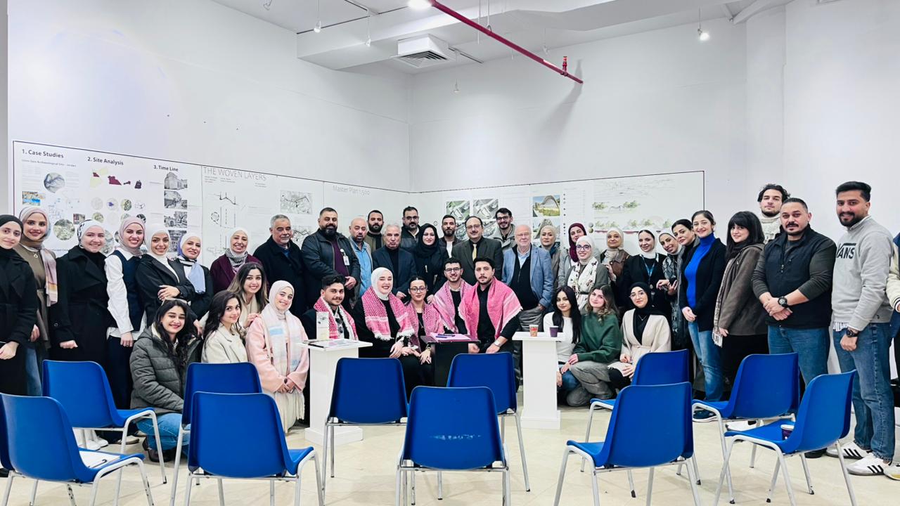 شارکت امانة عمان الكبرى من خلال مديرية مشاريع تطوير أحياء عمان والمسارات السياحية، يوم أمس، في العرض المرئي لمشاريع طلبة كلية العمارة والتصميم في جامعة البتراء لمسار درب المعمودية