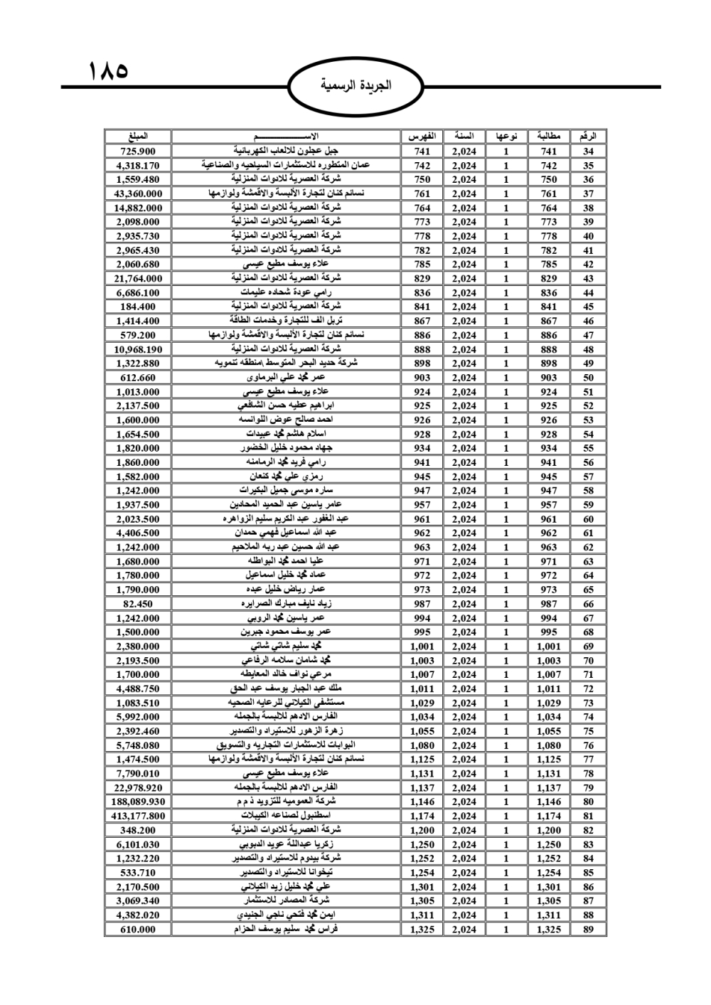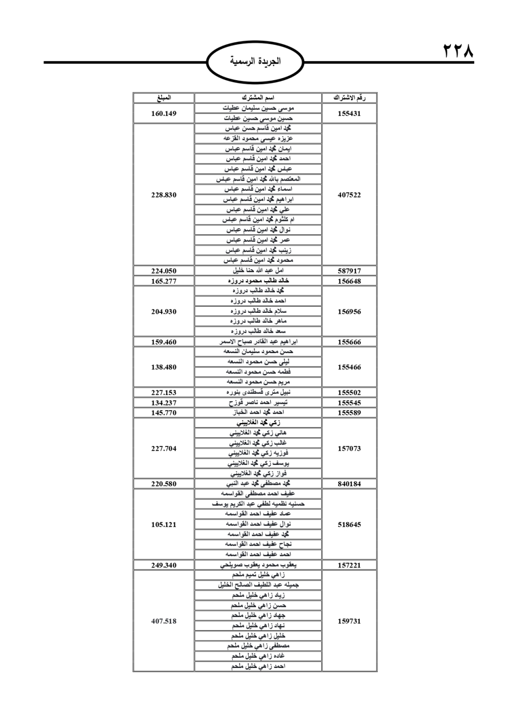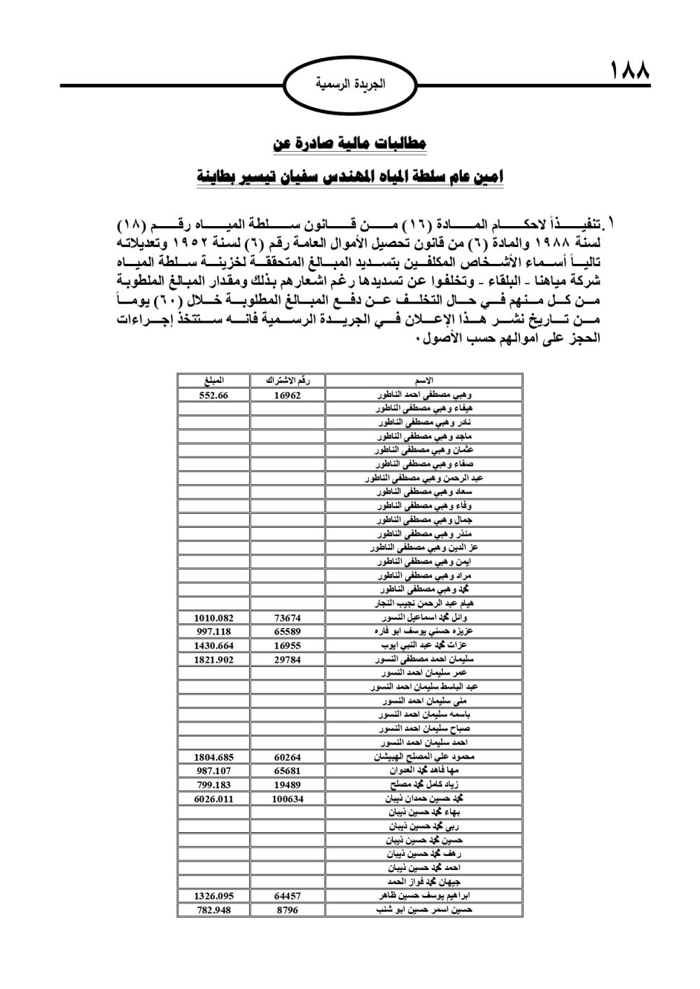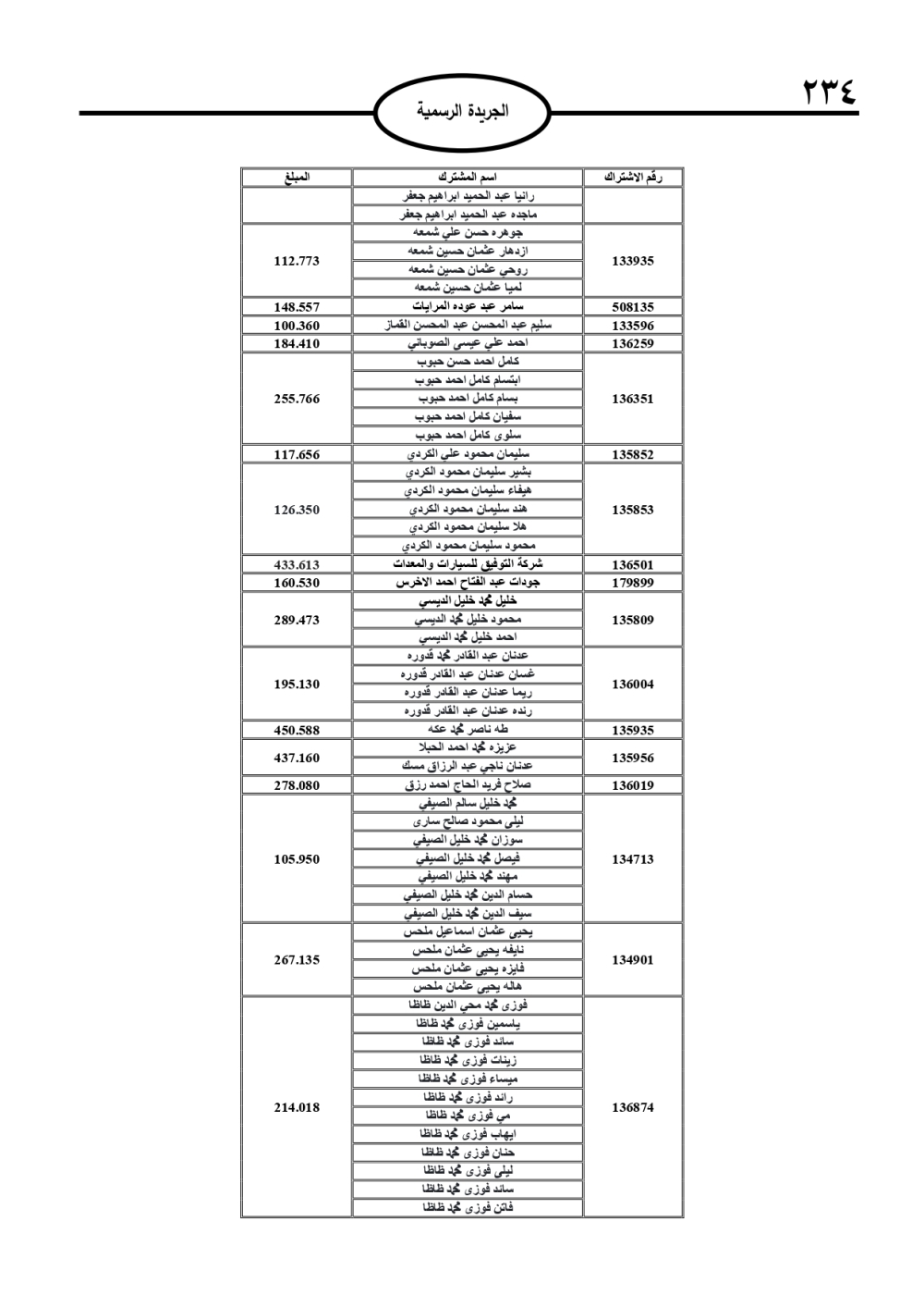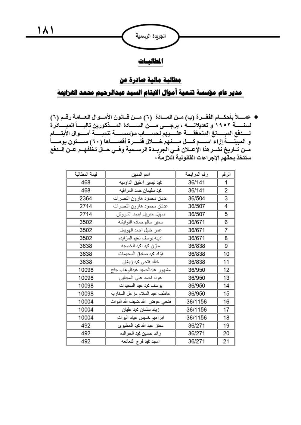 وتضمنت الجريدة الرسمية أسماء الأشخاص المطلوب منهم السداد، تمهيدًا لاتخاذ الإجراءات القانونية بحق المتخلفين عن الدفع.
