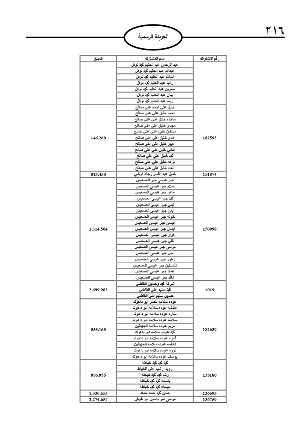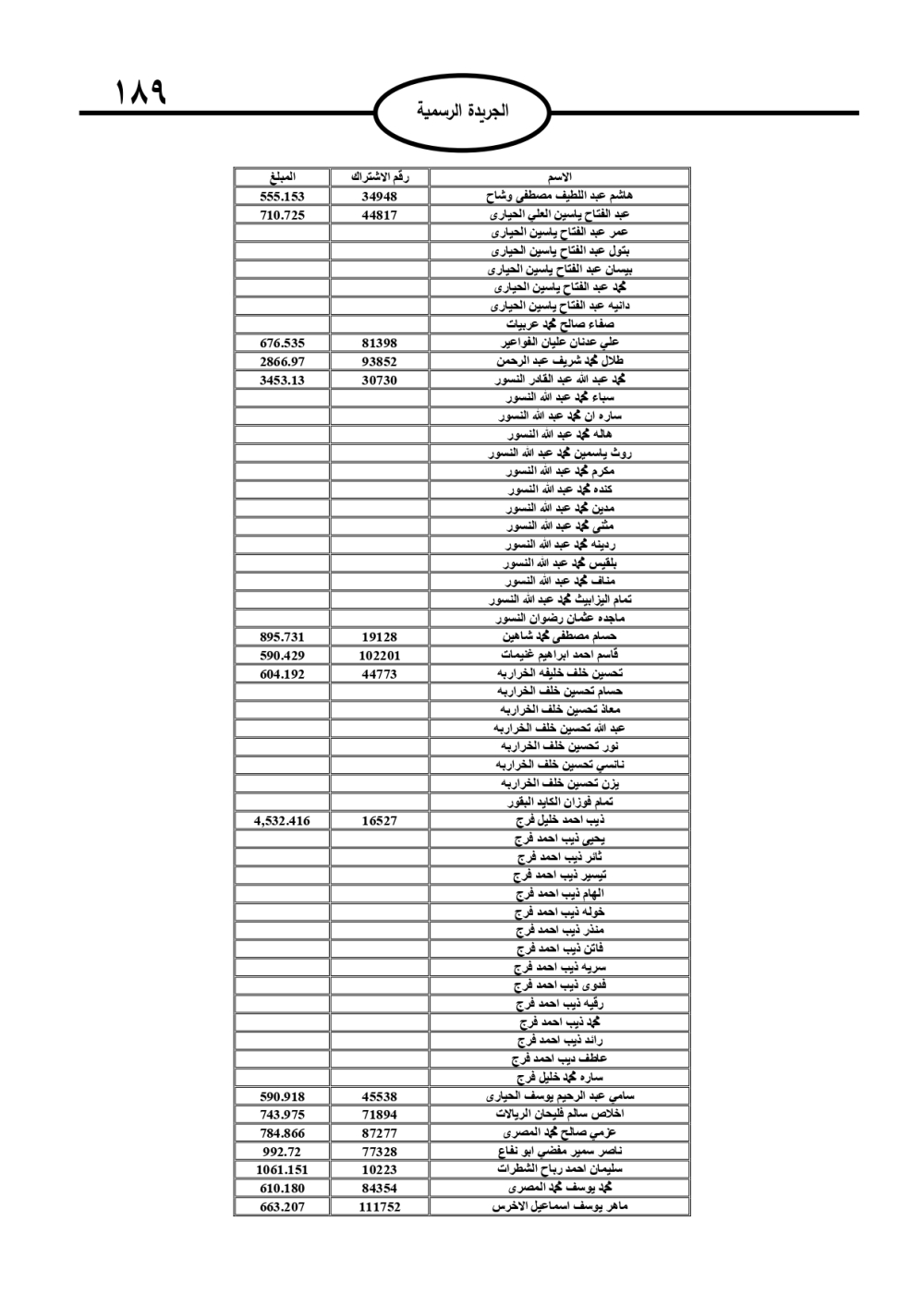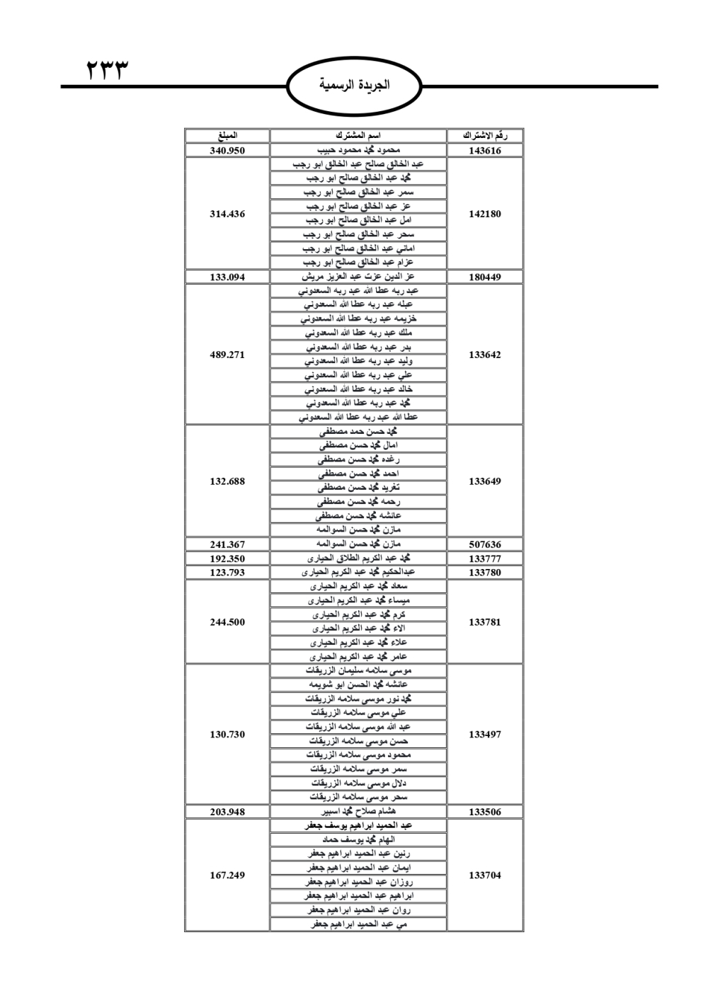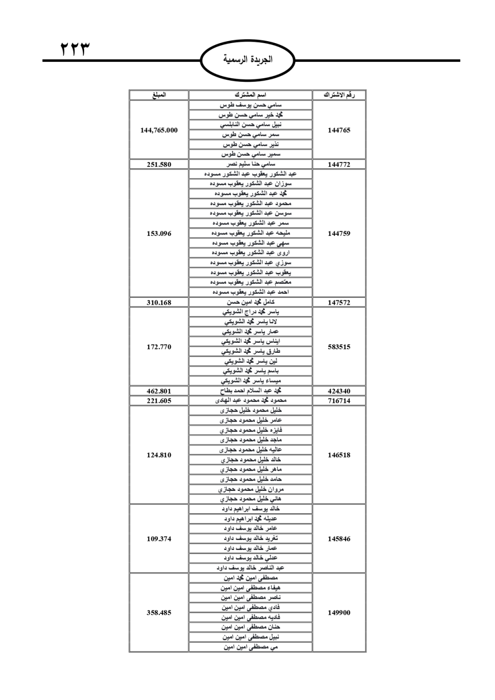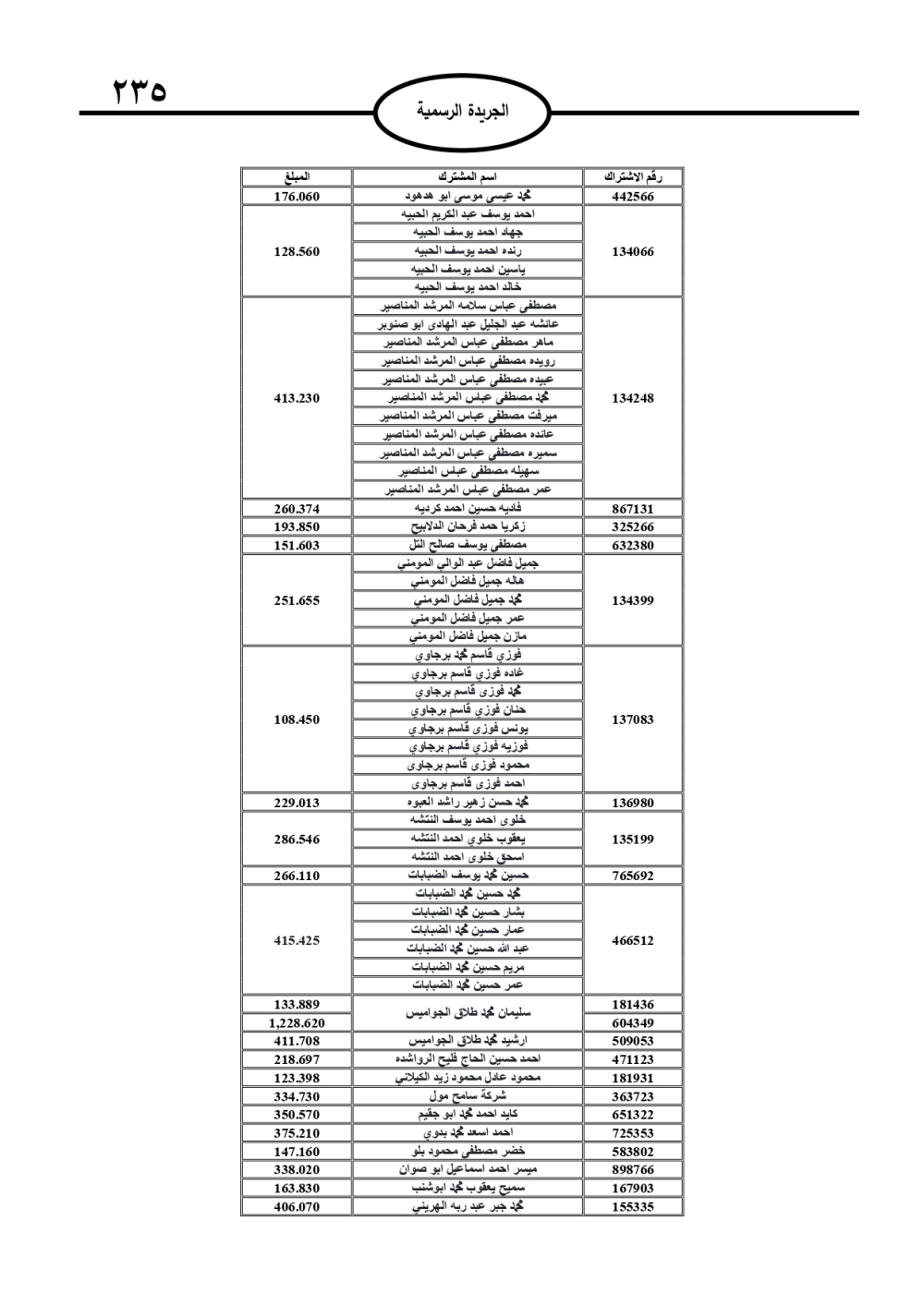 وتضمنت الجريدة الرسمية أسماء الأشخاص المطلوب منهم السداد، تمهيدًا لاتخاذ الإجراءات القانونية بحق المتخلفين عن الدفع.