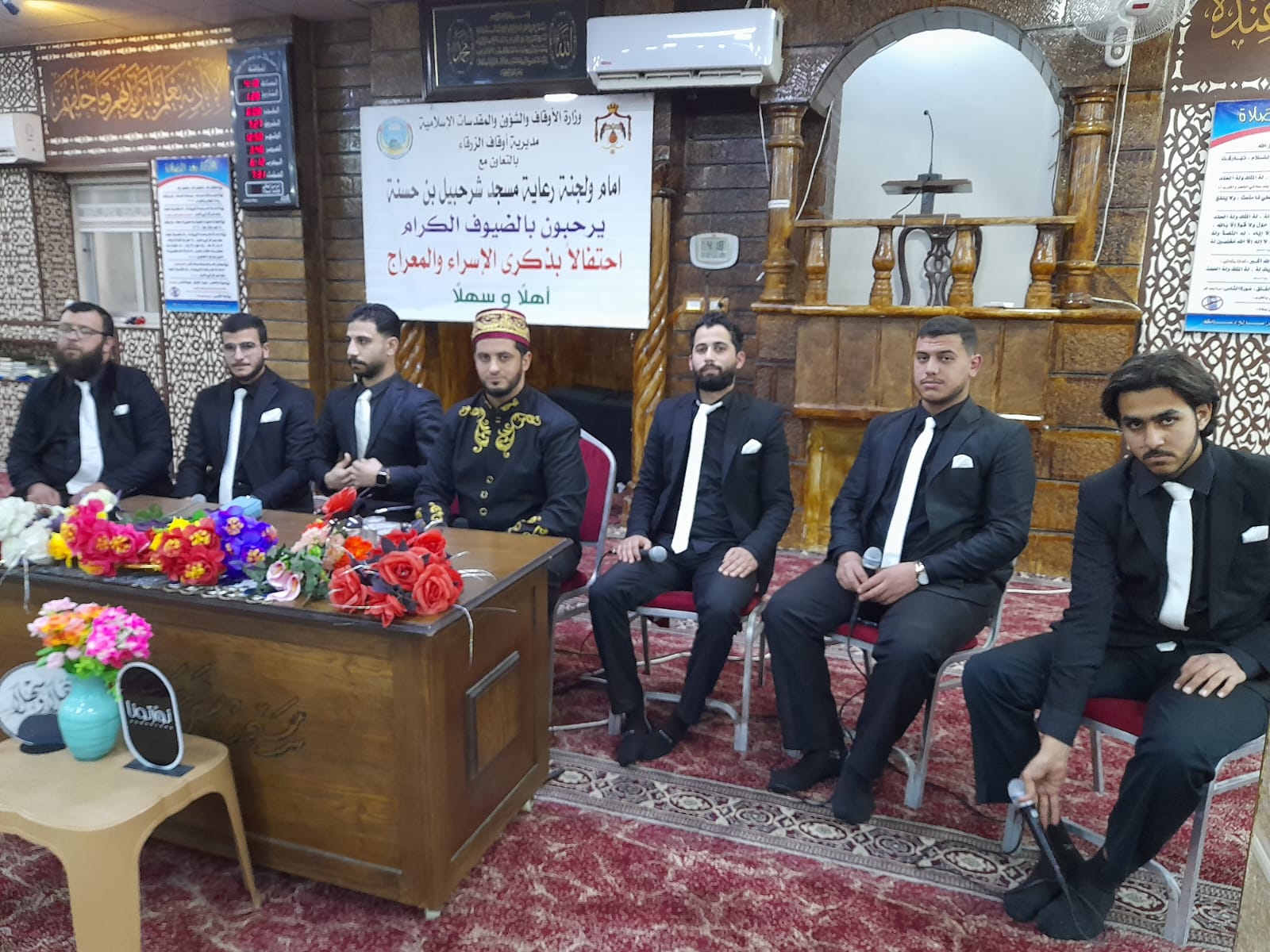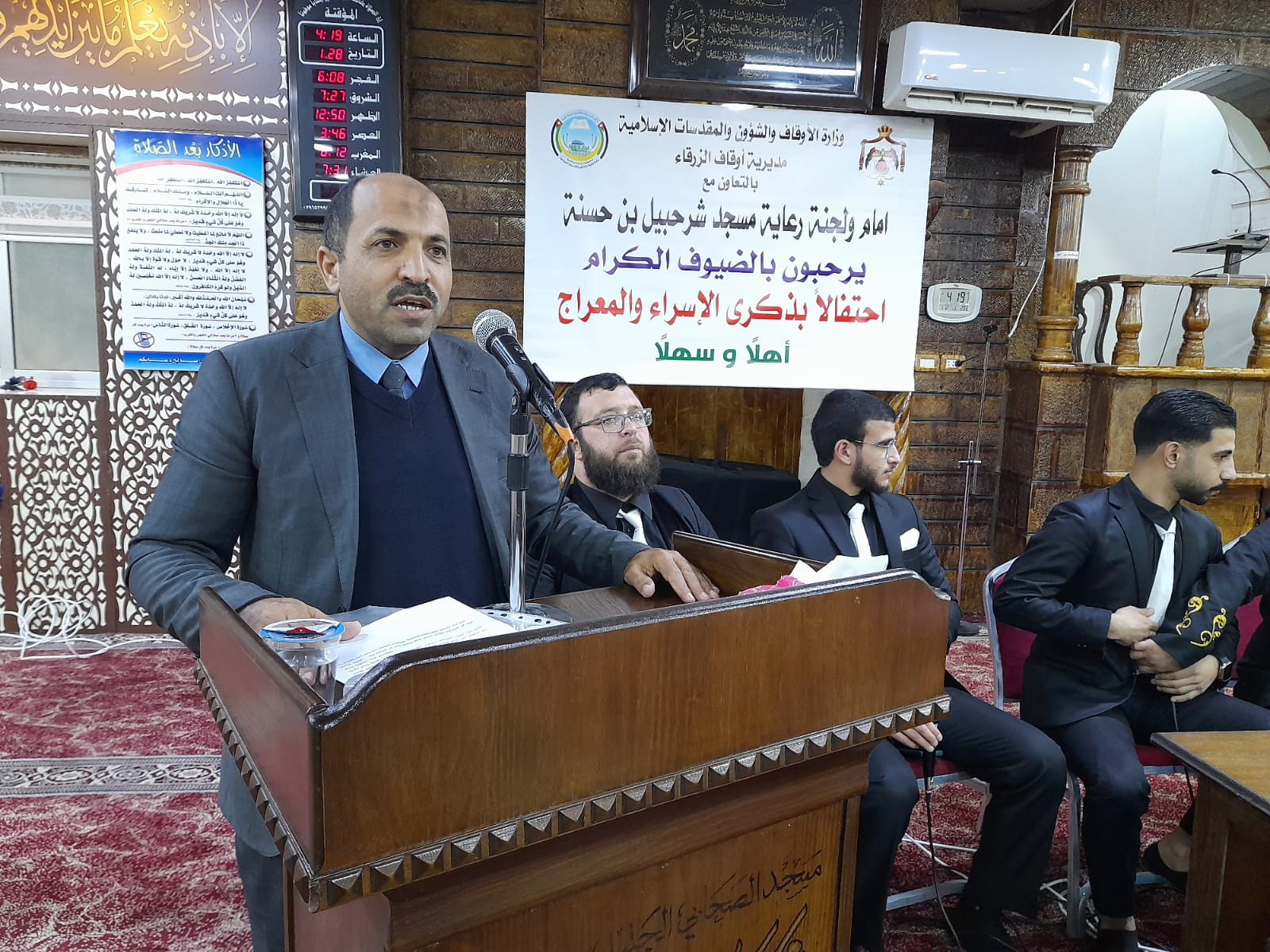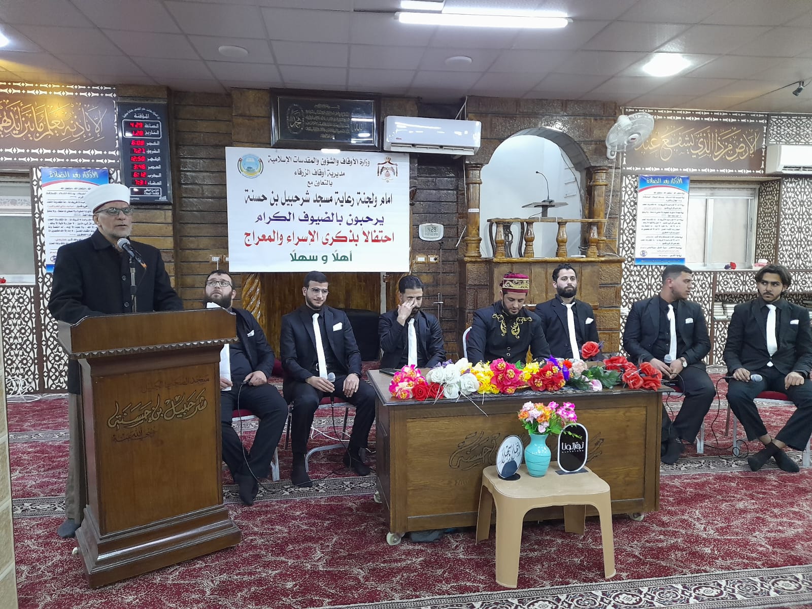 وليد حماد - مندوبًا عن محافظ الزرقاء الدكتور فراس أبو قاعود، رعى متصرف لواء الرصيفة الدكتور أيمن الرومي بني خالد الاحتفال الذي نظمته مديرية أوقاف الزرقاء بالتعاون مع إمام ولجنة رعاية مسجد شرحبيل بن حسنة، إحياءً لذكرى الإسراء والمعراج، وذلك في مسجد شرحبيل بن حسنة، بحضور ضيف الحفل الدكتور خالد البطوش، آمر كلية الأمير حسن للعلوم الإنسانية.