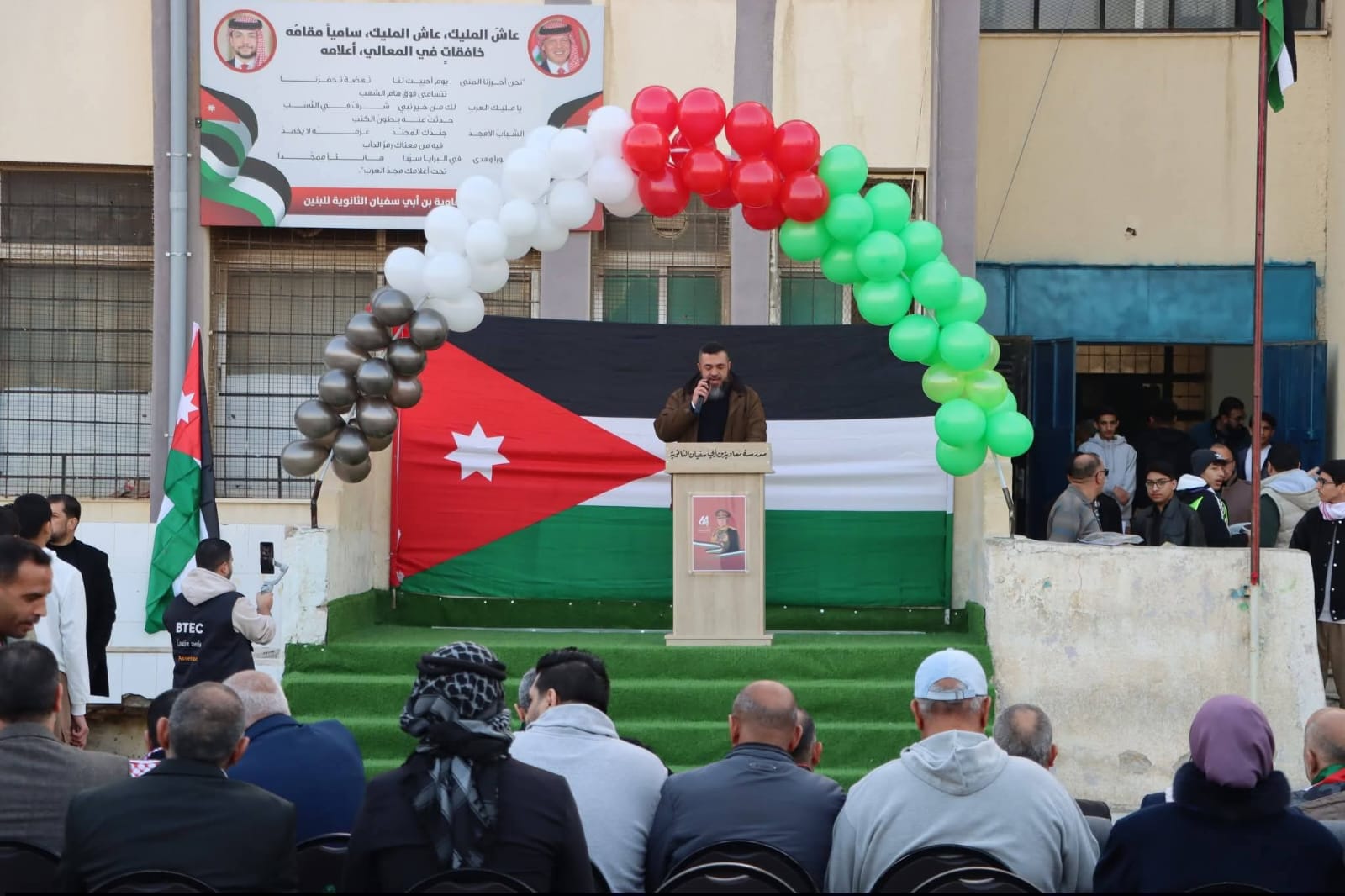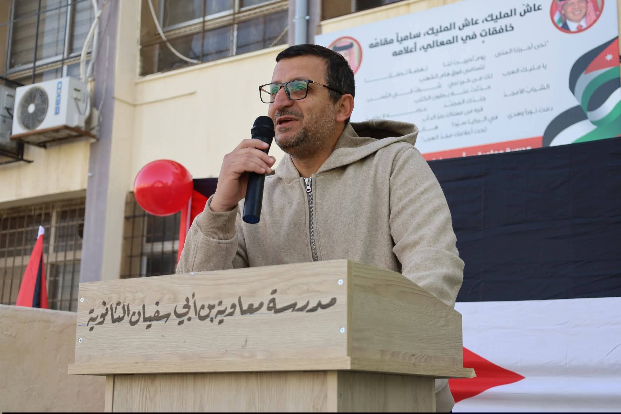 وأضاف أن الأسرة التربوية، وهي تحتفل بهذه المناسبة العزيزة، تجدد العهد والولاء للقيادة الهاشمية، وتؤكد التزامها بمواصلة العمل الدؤوب لتنفيذ التوجيهات الملكية السامية، وترسيخ قيم المواطنة الصالحة والانتماء الوطني لدى الطلبة .