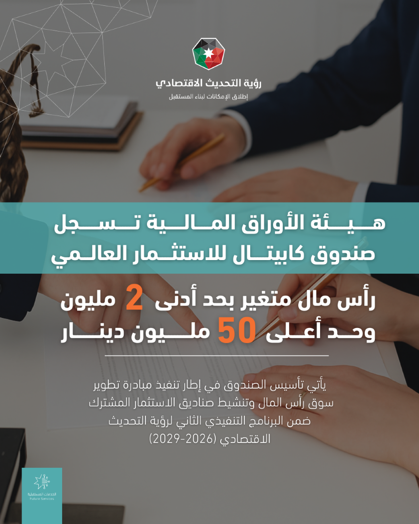 ويأتي إطلاق هذا الصندوق ضمن الجهود الرامية إلى تعزيز الثقة بسوق رأس المال الأردني، وتوفير أدوات استثمارية متنوعة، وتحفيز مشاركة الأفراد والمؤسسات في السوق، بما ينسجم مع أهداف رؤية التحديث الاقتصادي والنمو المستدام.