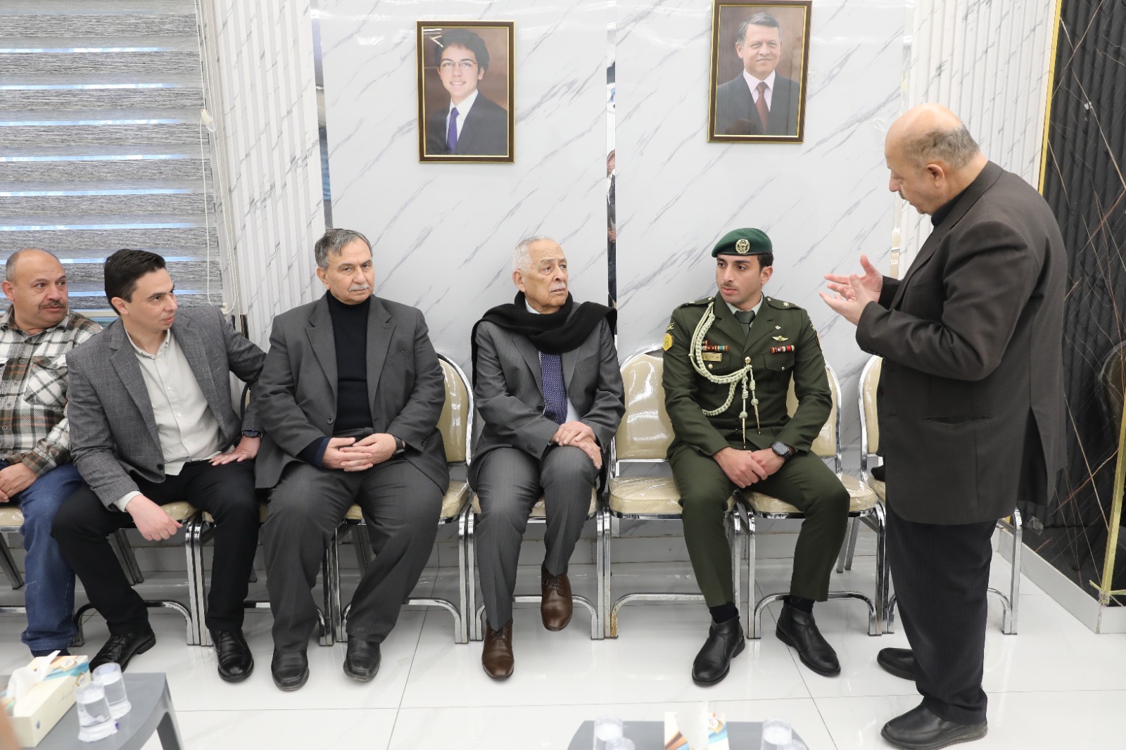 *ففي منطقة صويلح بالعاصمة عمان*، زار العيسوي بيت عزاء المرحوم النائب السابق عثمان حميد الشيشاني، حيث نقل باسم جلالة الملك وسمو ولي العهد خالص التعازي والمواساة إلى ذوي الفقيد وعموم عشيرة الشيشاني، داعيا الله أن يشمل الفقيد برحمته الواسعة.