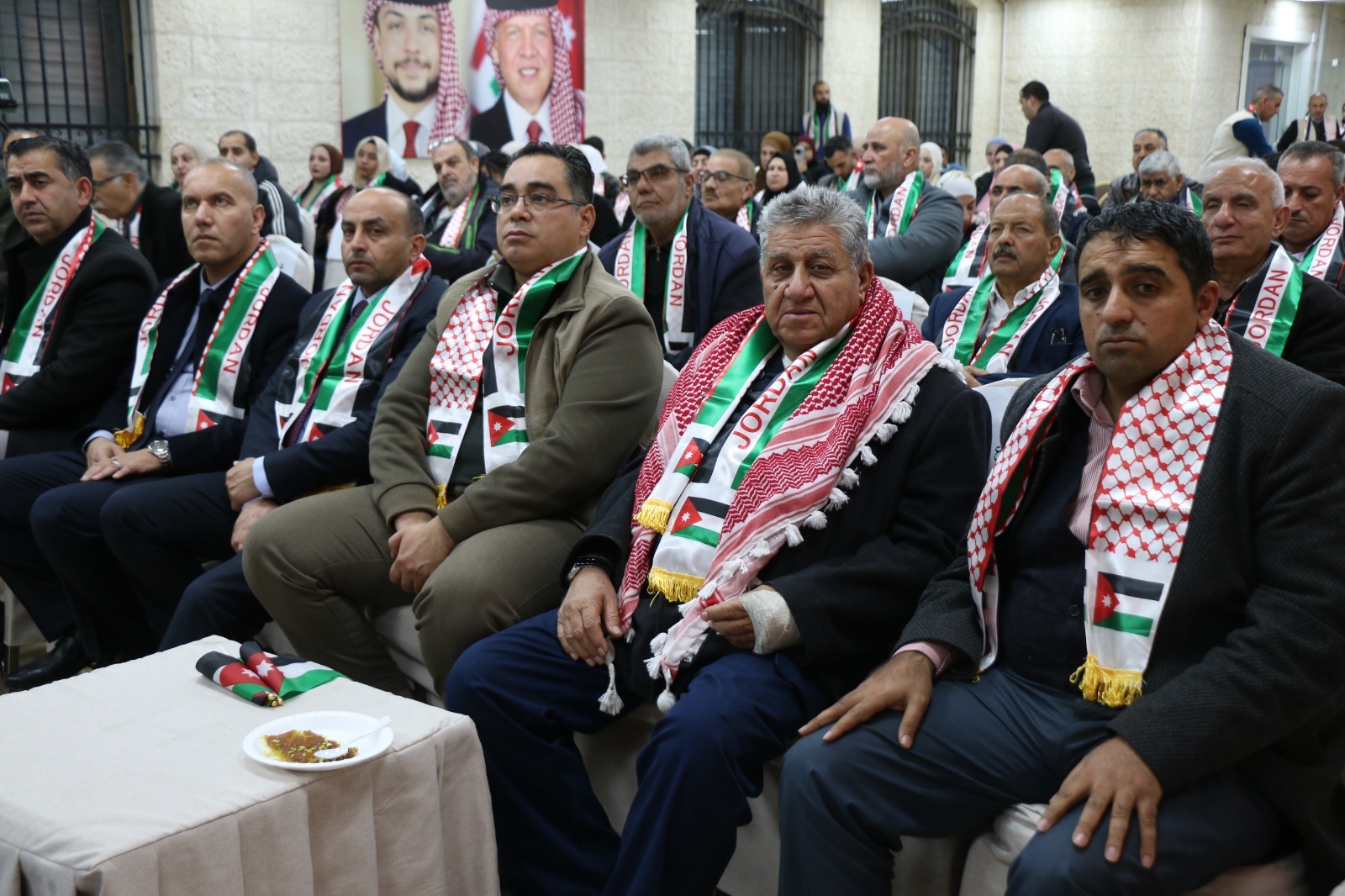 واستعرض أبو عيد مواقف جلالته الصلبة في الدفاع عن قضايا الوطن والأمة وفي مقدمتها القضية الفلسطينية .