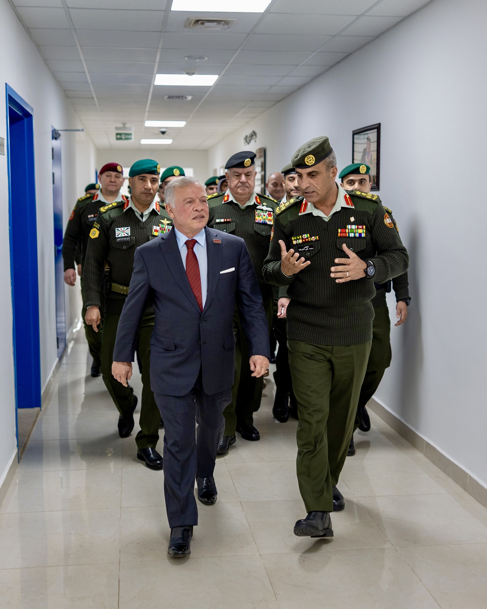 واستمع جلالته، بحضور رئيس هيئة الأركان المشتركة اللواء الركن يوسف أحمد الحنيطي، إلى إيجاز قدمه مدير عام الخدمات الطبية الملكية العميد الطبيب سهل الحموري، استعرض خلاله جهود تطوير الخدمات الطبية ورفع قدرات الكوادر المؤهلة لتقديم رعاية صحية عالية الجودة.