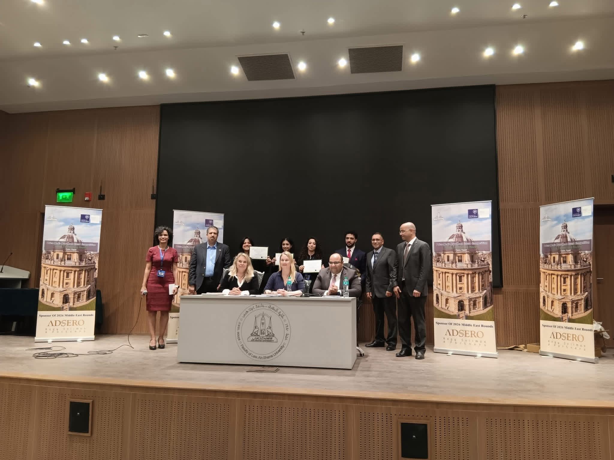 The qualifying team consists of the students Asal Al-Jarjawi, Abdullah Suroor, Layan Foudeh, and Salaf Al-Assaad. This achievement was further strengthened by Asal Al-Jarjawi receiving the award for Runner up Oralist in the competition, reflecting the strong academic and professional preparation of the College of Law students and their ability to engage in legal advocacy and analysis in accordance with the highest international standards.