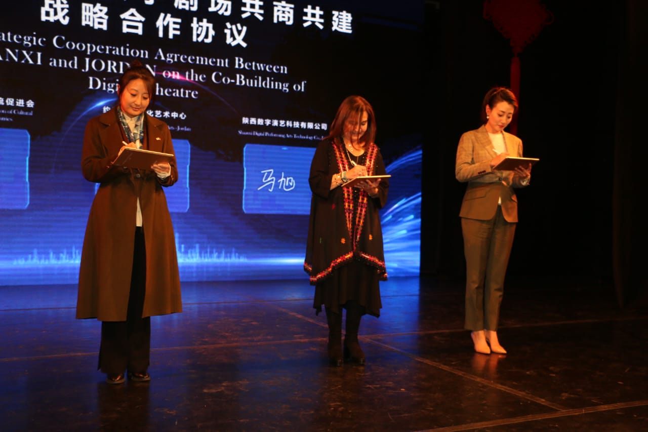 وفي الحفل، تم عرض مادة فلمية عن مسرح طريق الحرير الرقمي، كما جرى التوقيع على إطلاق مشروع المسرح الرقمي بين الأردن والصين.