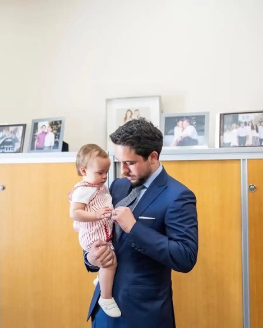 نشر حمزة ازوقة، المصور الخاص لولي العهد، صورة رسمية تظهر سمو الأمير الحسين بن عبدالله الثاني رفقة الأميرة إيمان في مكاتب الحسينية.