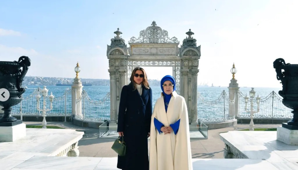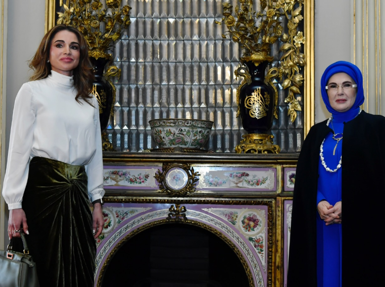 ضمن زيارة عمل لجلالة الملك عبدالله الثاني الى تركيا، التقت جلالة الملكة رانيا العبدالله اليوم بعقيلة الرئيس التركي رجب طيب أردوغان، السيدة الأولى أمينة أردوغان.