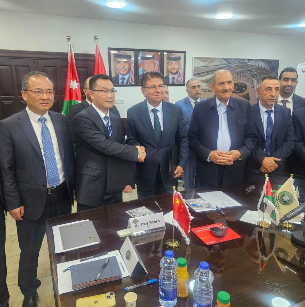ووقع الاتفاقية، بحضور رئيس مجلس إدارة شركة مناجم الفوسفات الأردنية الدكتور محمد الذنيبات، الرئيس التنفيذي للشركة المهندس عبدالوهاب الرواد، وعن الجانب الصيني الرئيس التنفيذي لشركة شرق الصين للهندسة والعلوم والتكنولوجيا المحدودة منغ تشنزو.