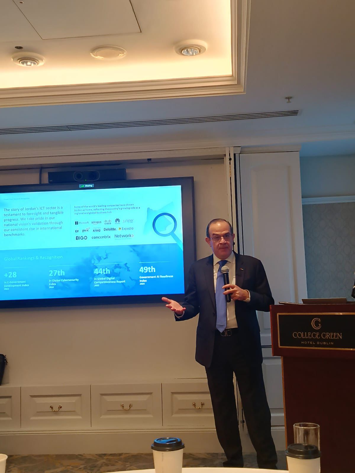 بدوره، بيّن السفير الأردني منار الدباس أهمية البناء على العلاقة المتميزة بين إيرلندا والأردن، وبما يسهم في تعزيز العلاقات الاقتصادية والاستثمارية بين البلدين الصديقين، خاصة مع اقتراب انعقاد المؤتمر الأردني–الأوروبي للاستثمار في نيسان القادم