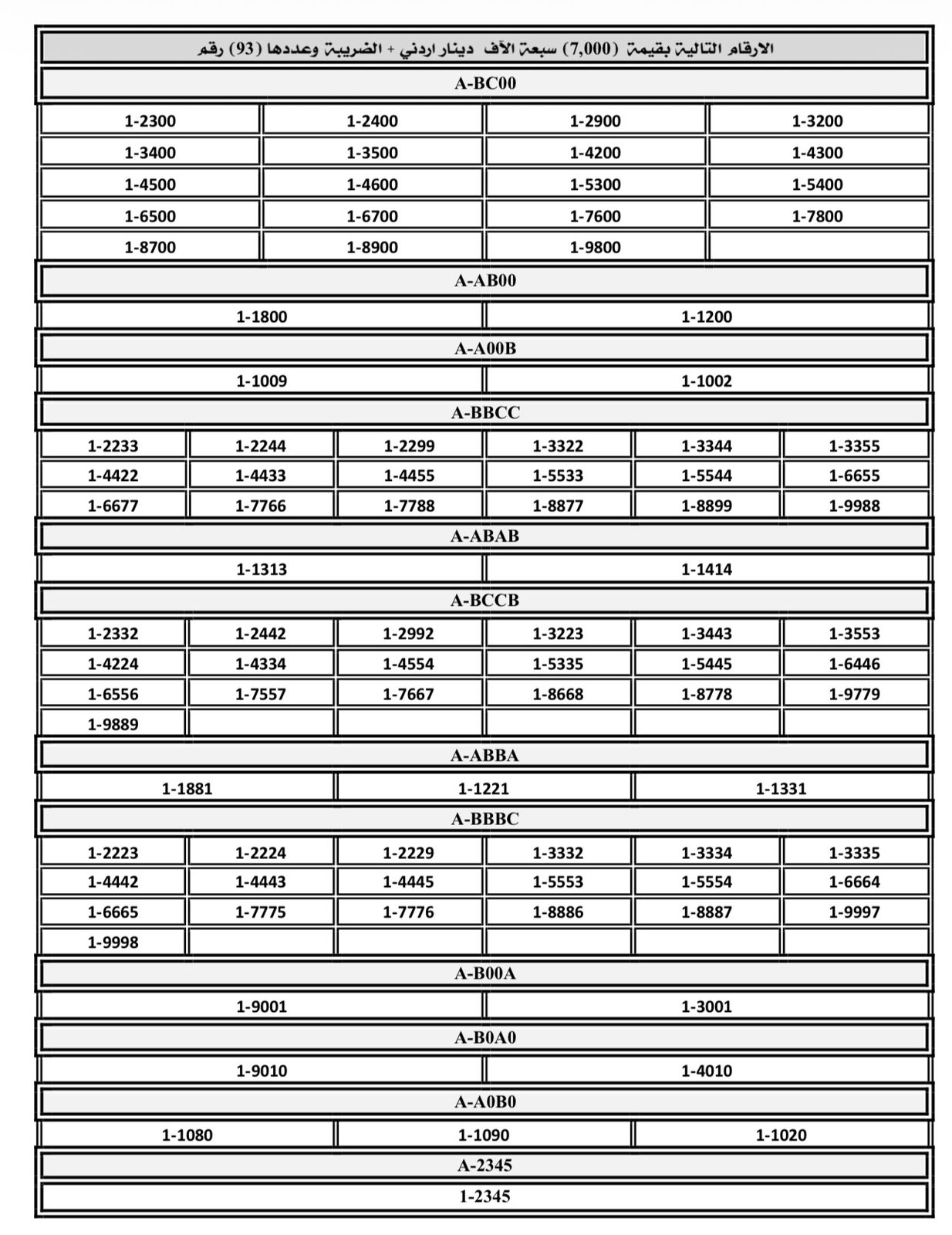 إدارة ترخيص السواقين والمركبات تطرح أرقاماً مميزة للبيع المباشر على بوابتها (تفاصيل)
