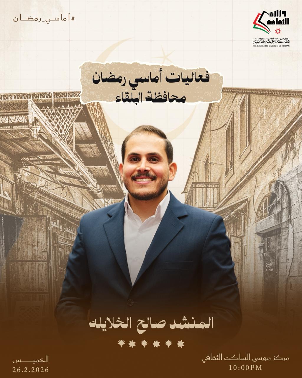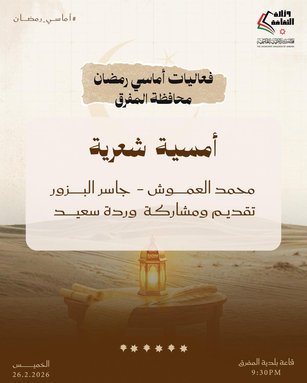 ويأتي البرنامج ضمن توجه الوزارة لتوزيع الفعاليات الثقافية على مختلف المحافظات، وبما يتيح للجمهور المشاركة في أنشطة رمضانية تعزز حضور الثقافة في الحياة العامة.