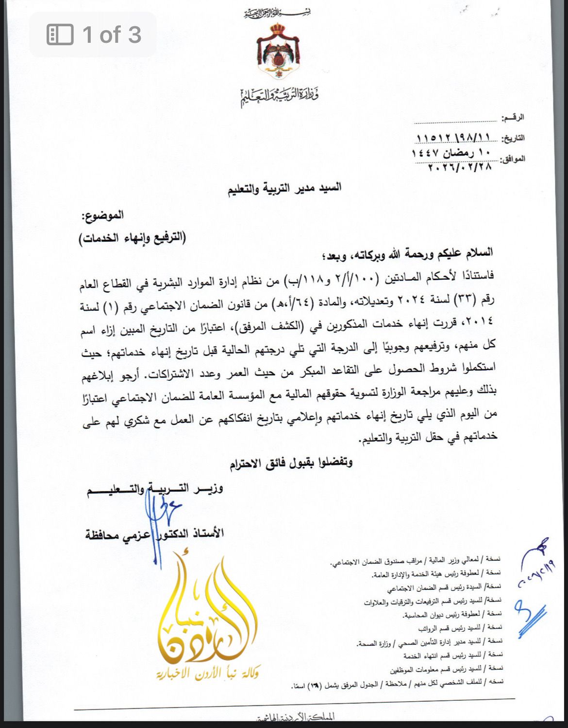 عاجل - ترفيعات وإحالات على التقاعد في التربية (وثائق وأسماء)