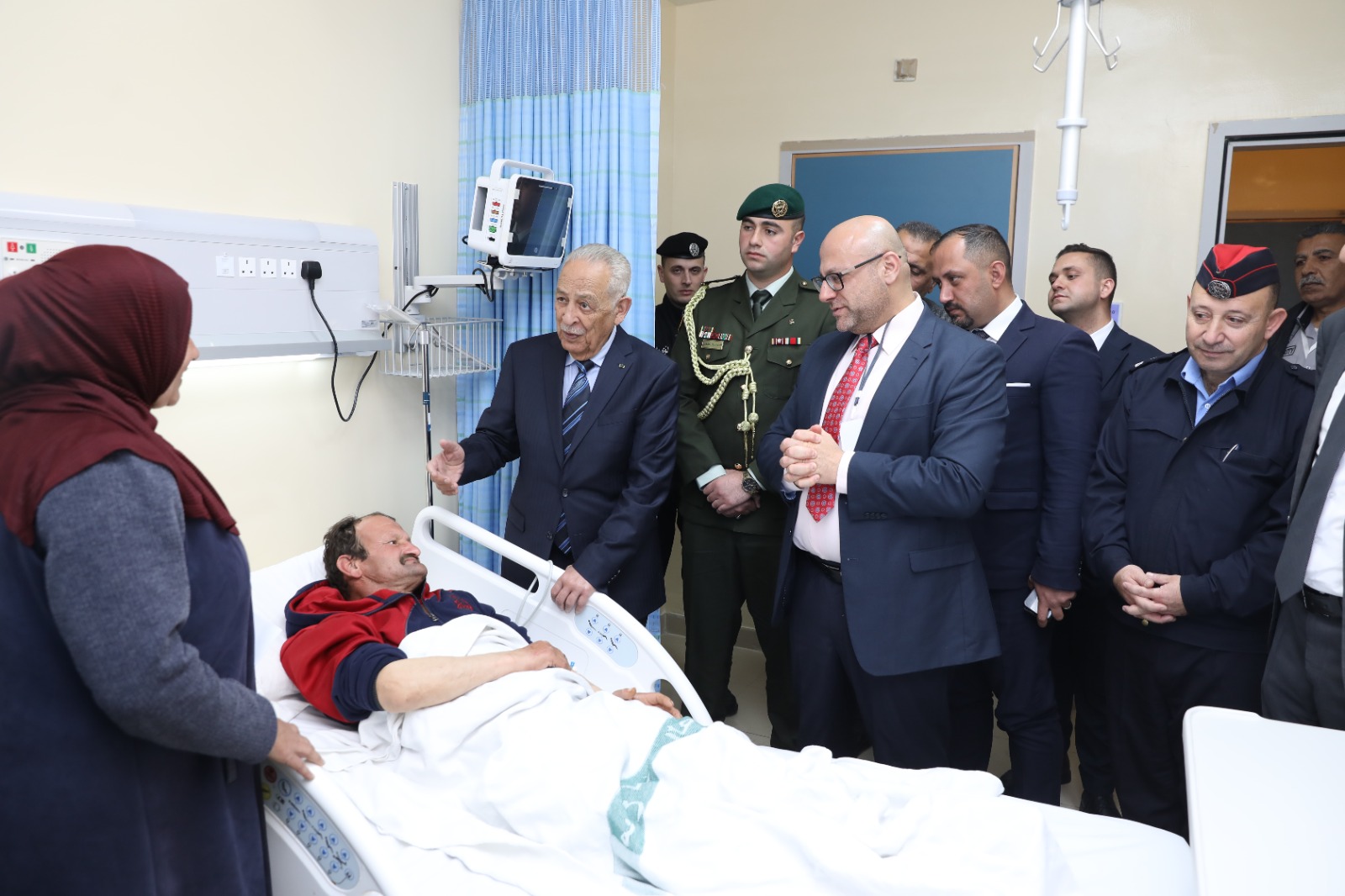 بتوجيهات من جلالة الملك عبدالله الثاني، اطمأن رئيس الديوان الملكي الهاشمي، يوسف حسن العيسوي، اليوم الاثنين على حالة المواطن عمر عبدالرحمن عبيدات، الذي يرقد في مستشفى الأميرة بسمة في منطقة زبدة بمحافظة اربد، إثر إصابته بشظايا صاروخ.