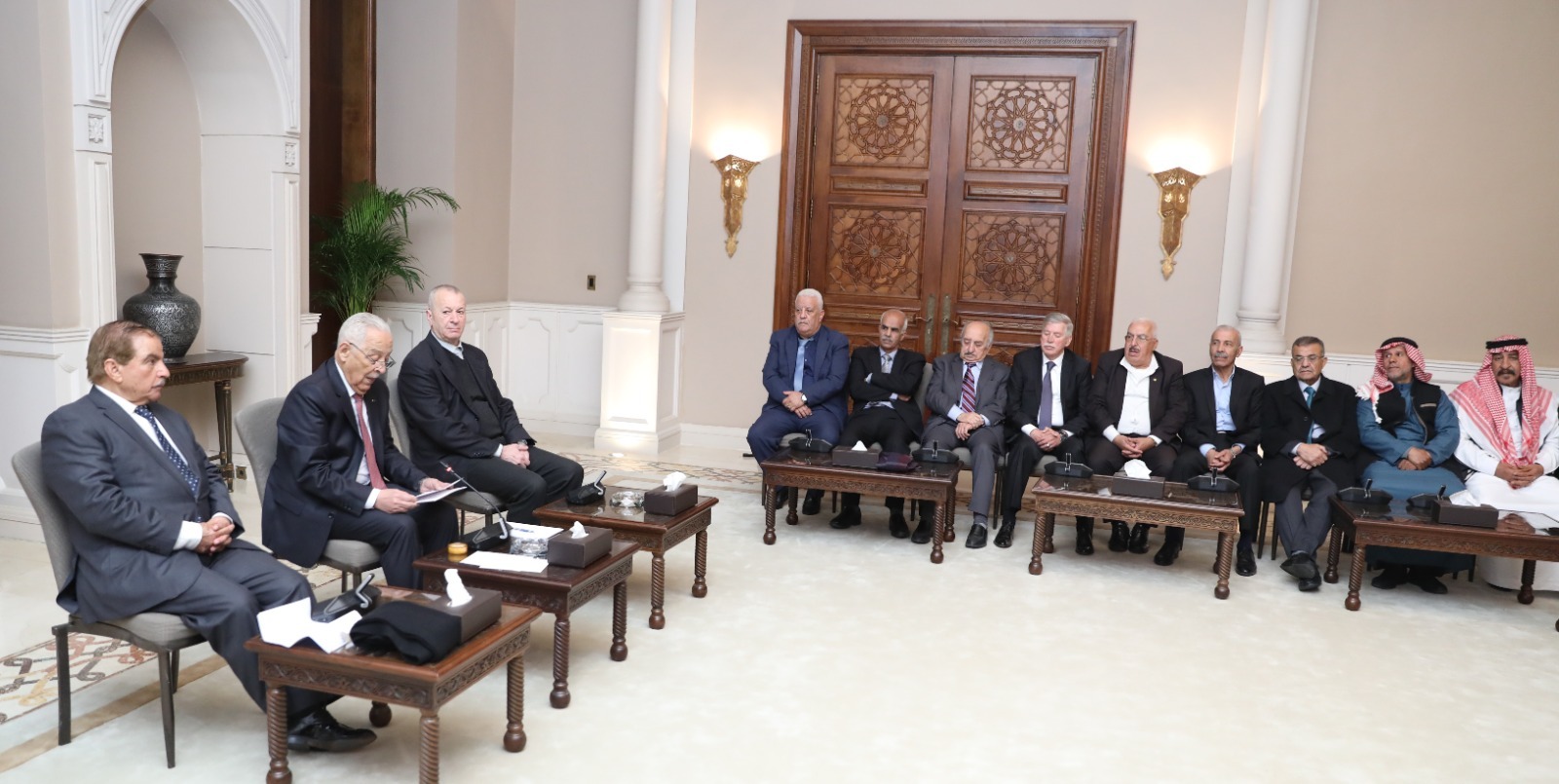 التقى رئيس الديوان الملكي الهاشمي، يوسف حسن العيسوي، اليوم الخميس، وفداً من هيئة رواد الحركة الرياضية والشبابية، إلى جانب ممثلين عن جمعية الأغوار الشمالية الثقافية للفلكلور الشعبي والمسرح.