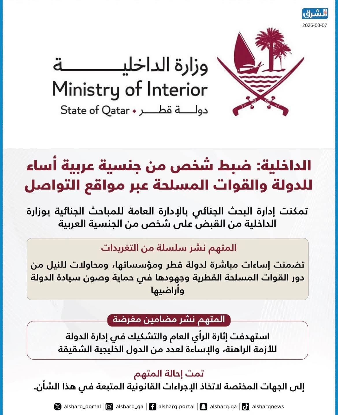قطر : القبض على "عربي" أساء للدولة ومؤسساتها