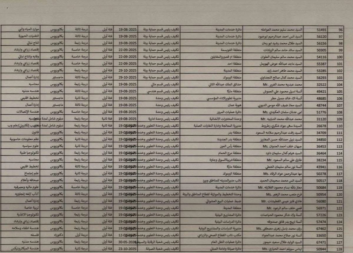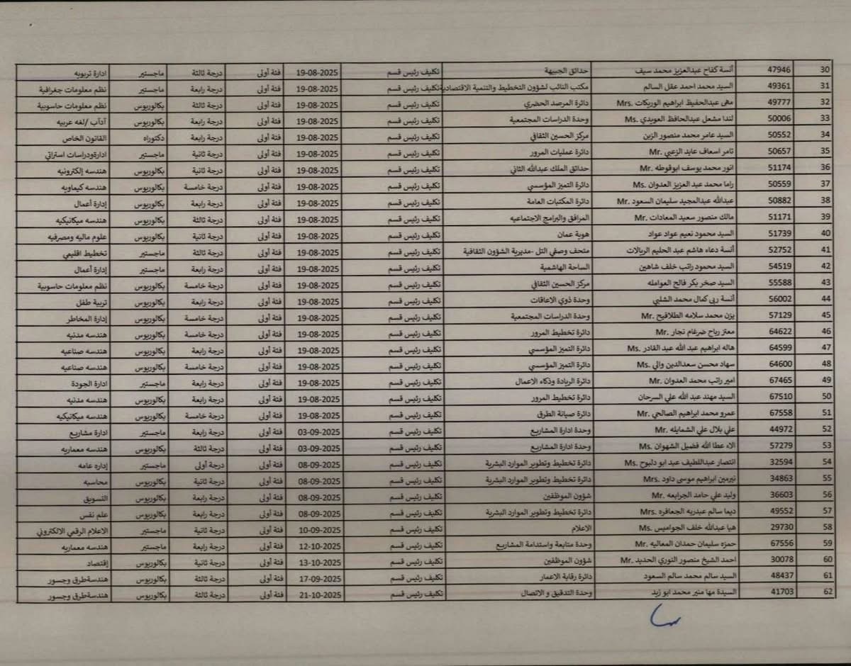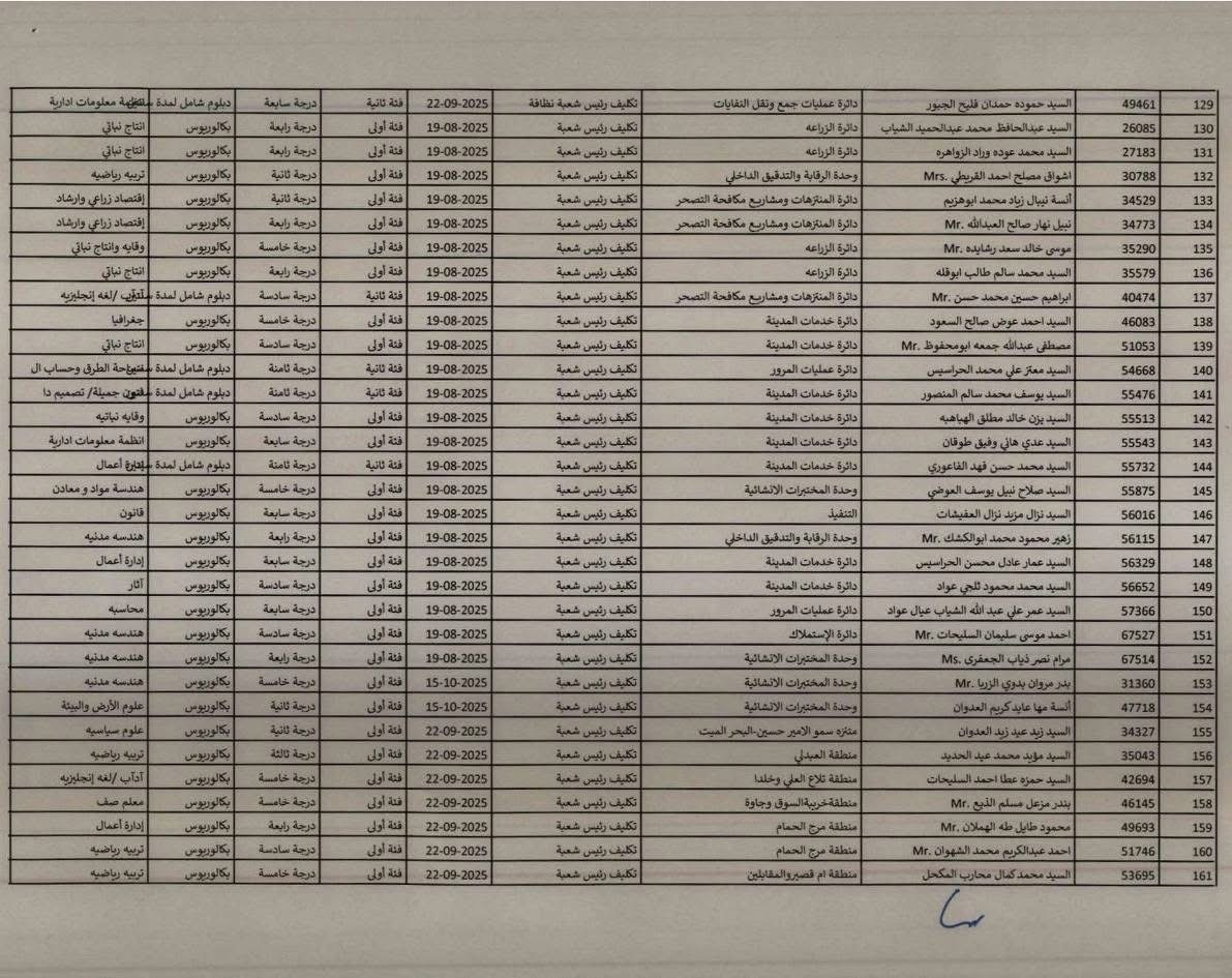 تنسيب بتثبيت موظفين في أمانة عمّان