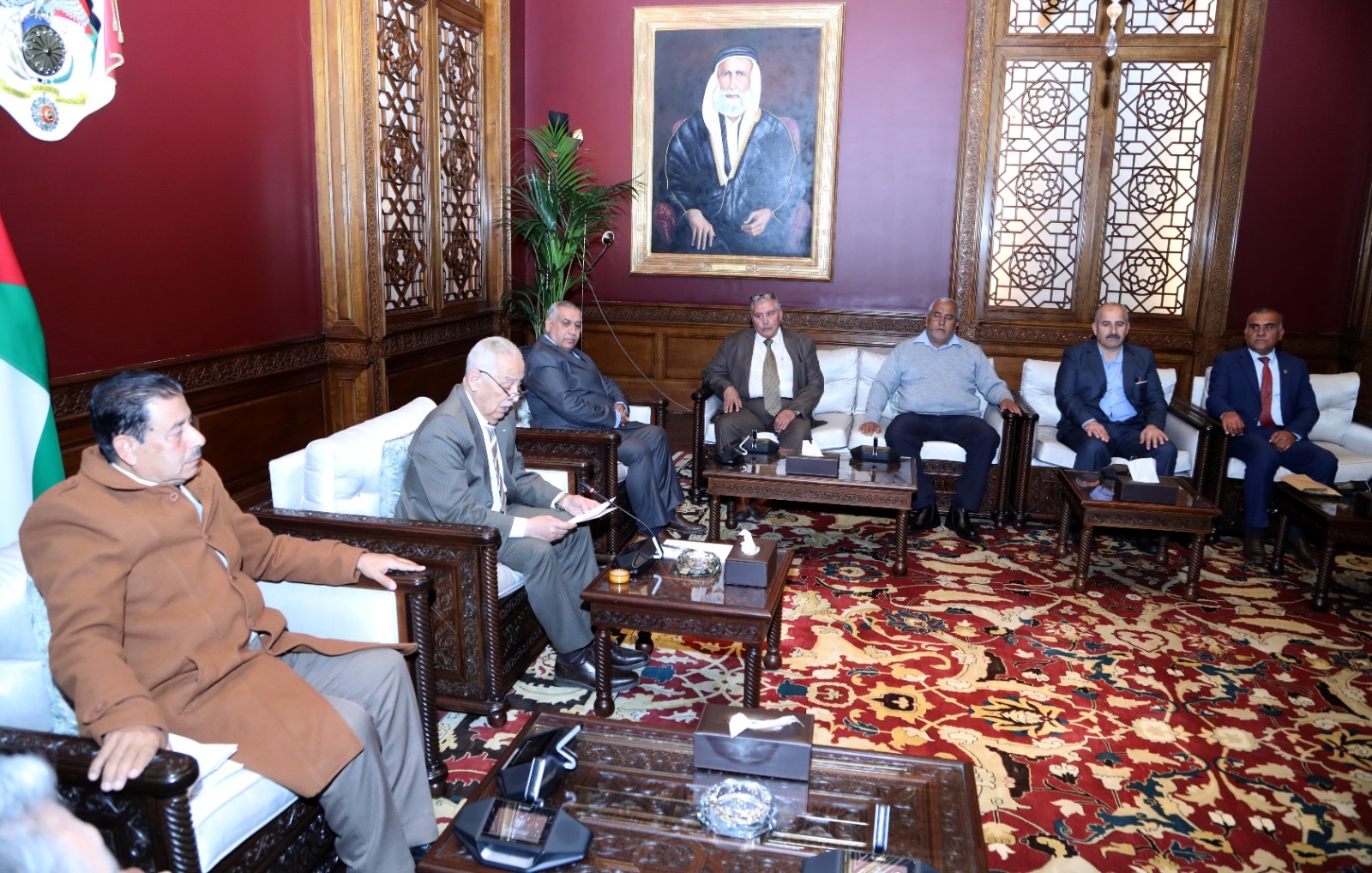 استقبل رئيس الديوان الملكي الهاشمي، يوسف حسن العيسوي، اليوم الأربعاء، وفدا من جمعية منتدى حلاوة الثقافي والتراثي وجمعية وادي ازقيق السياحية والأثرية.
