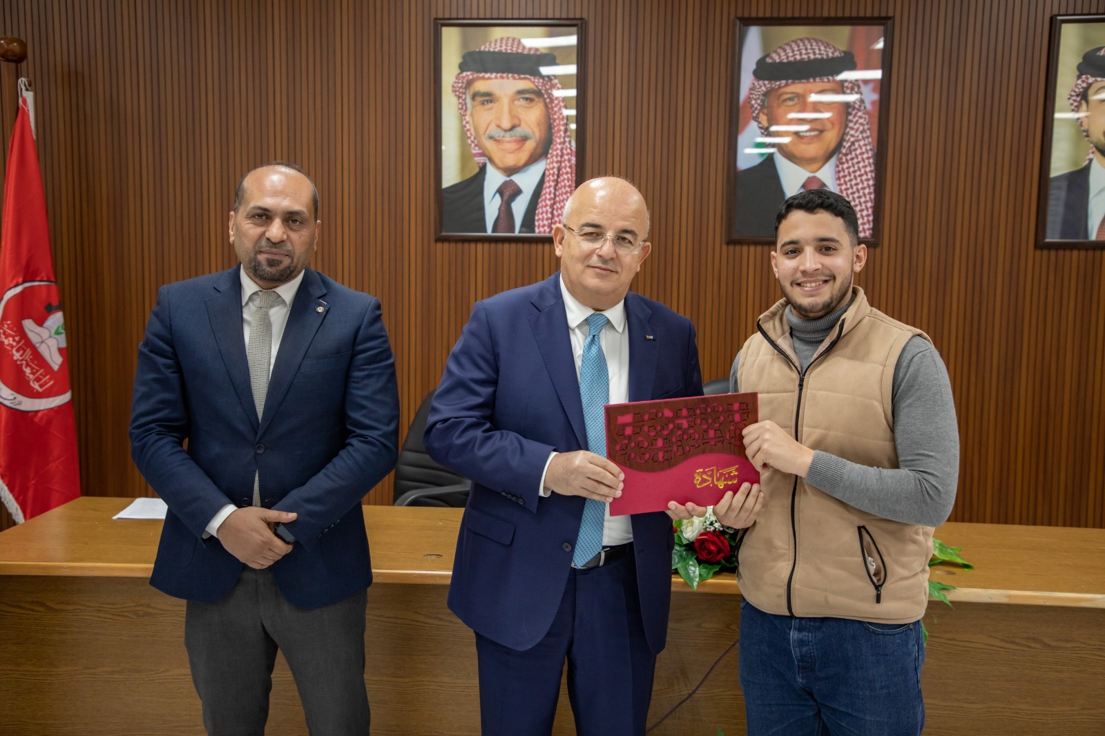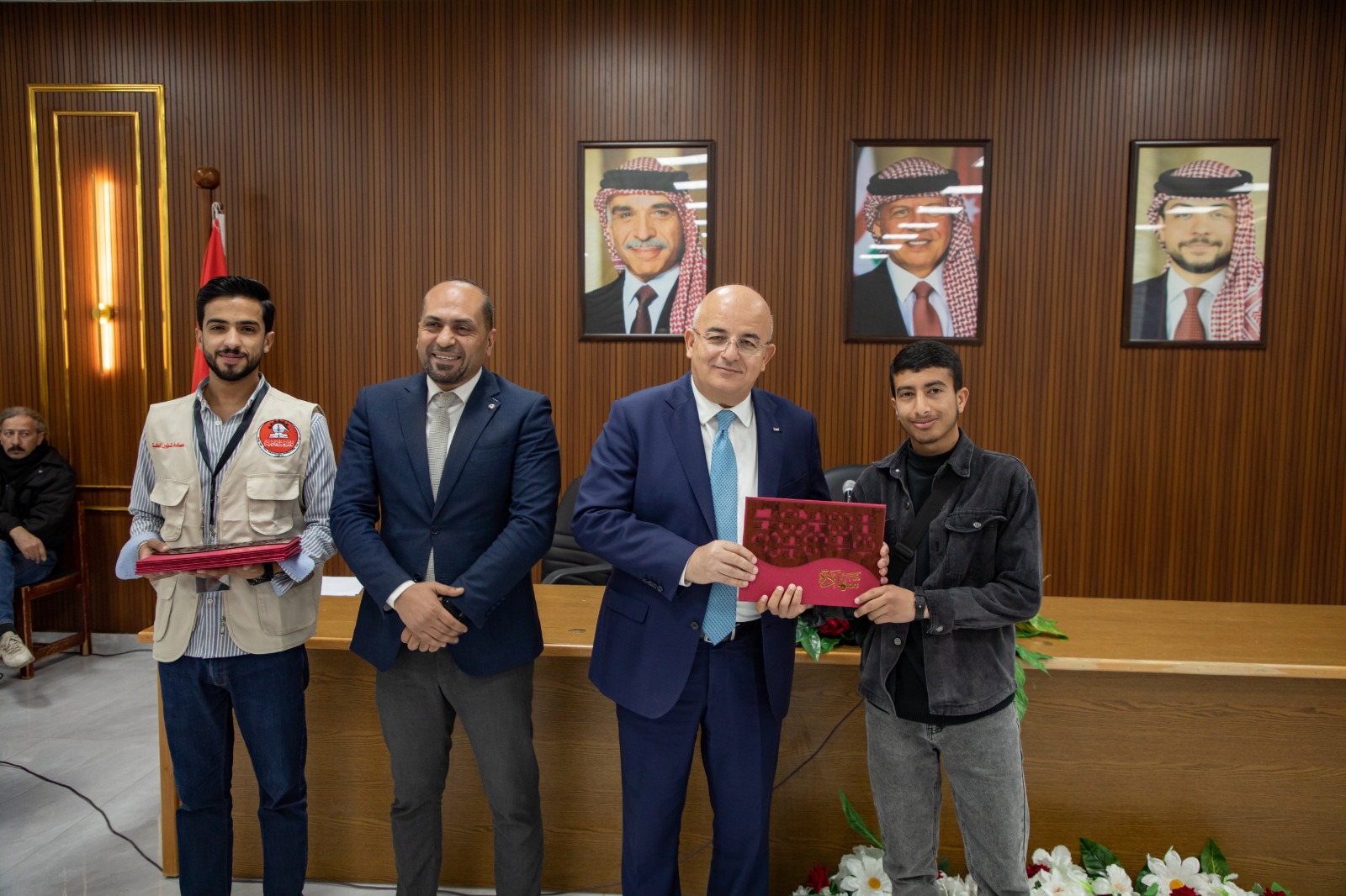 وفي ختام الحفل، سلّم رئيس الجامعة الدكتور الحياري الجوائزَ المالية للفائزين، والدروع التقديرية للجان التحكيم، ولمفتي الزرقاء، وللدكتور صهيب الصلاحات عن مشاركته في مبادرة "اغتنمها أيام معدودات، ولمقرئ الجامعة 2025 الطالب حمزة العبادي، كما سلّم الشهادات التقديرية للطلبة المشاركين في المسابقتين .